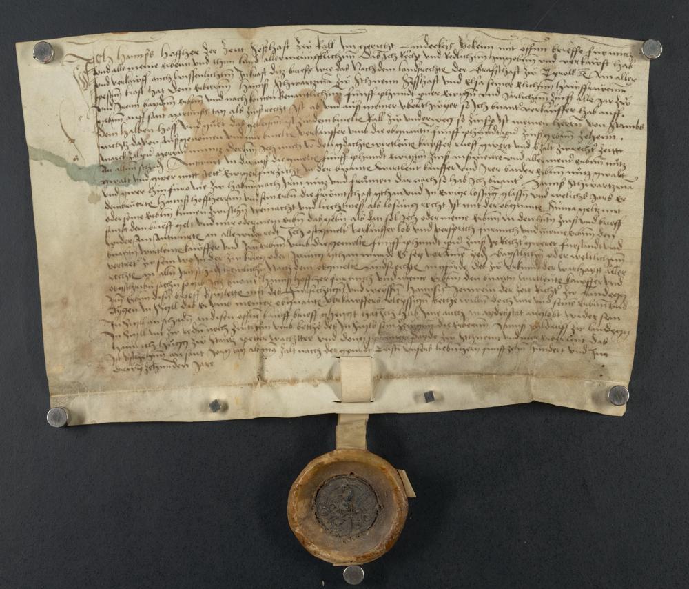 Vorderseite, Plica geöffnet, Siegel sichtbar