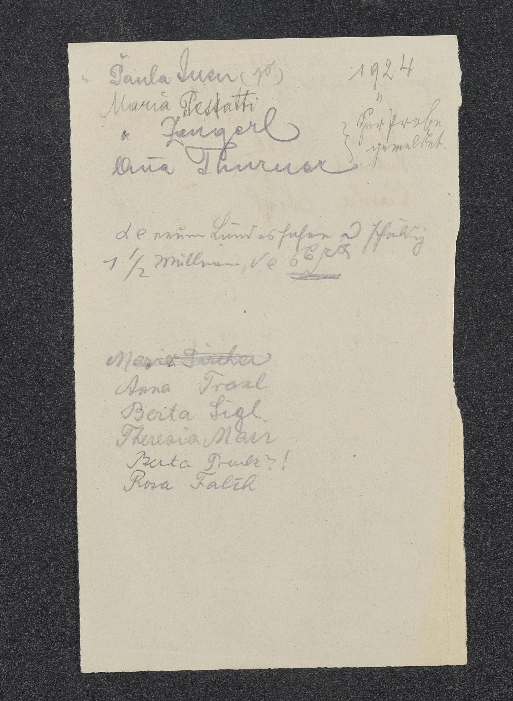 Notiz 1920-1922 mit Namen, teilweise durchgestrichen