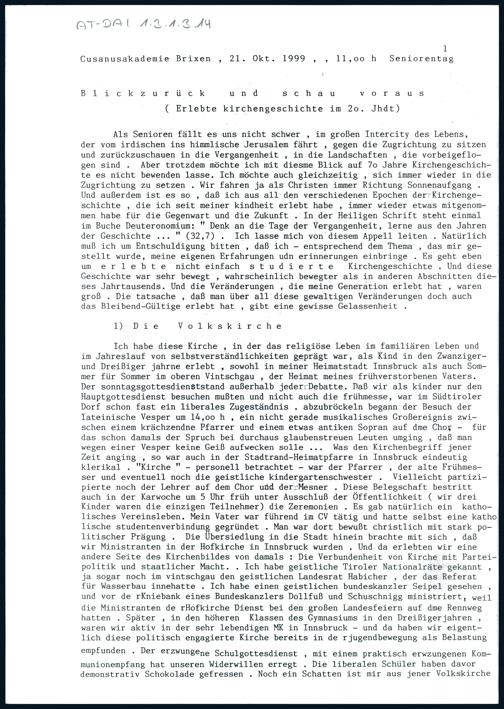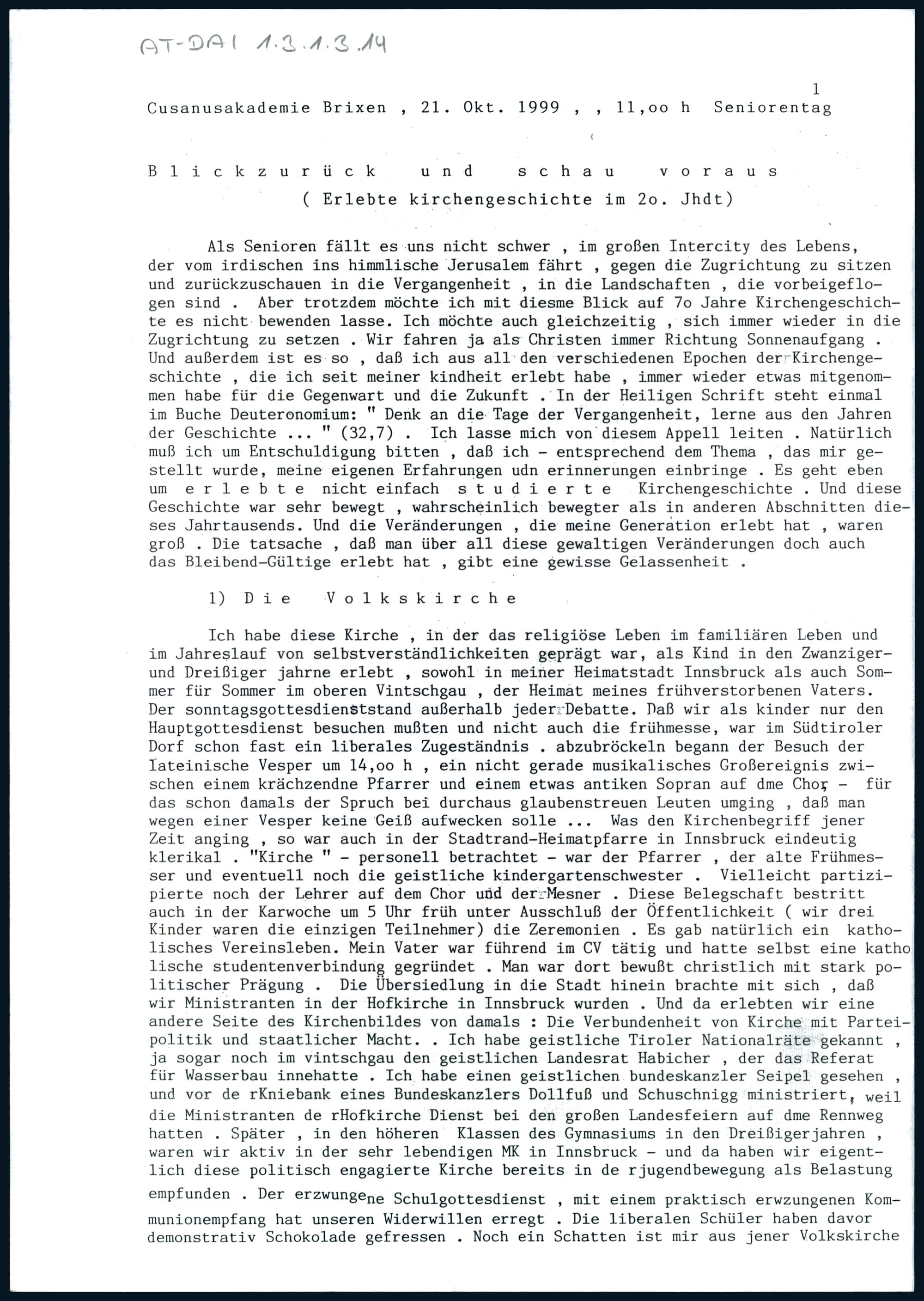 (Erlebte Kirchengeschichte im 20. Jhd.)