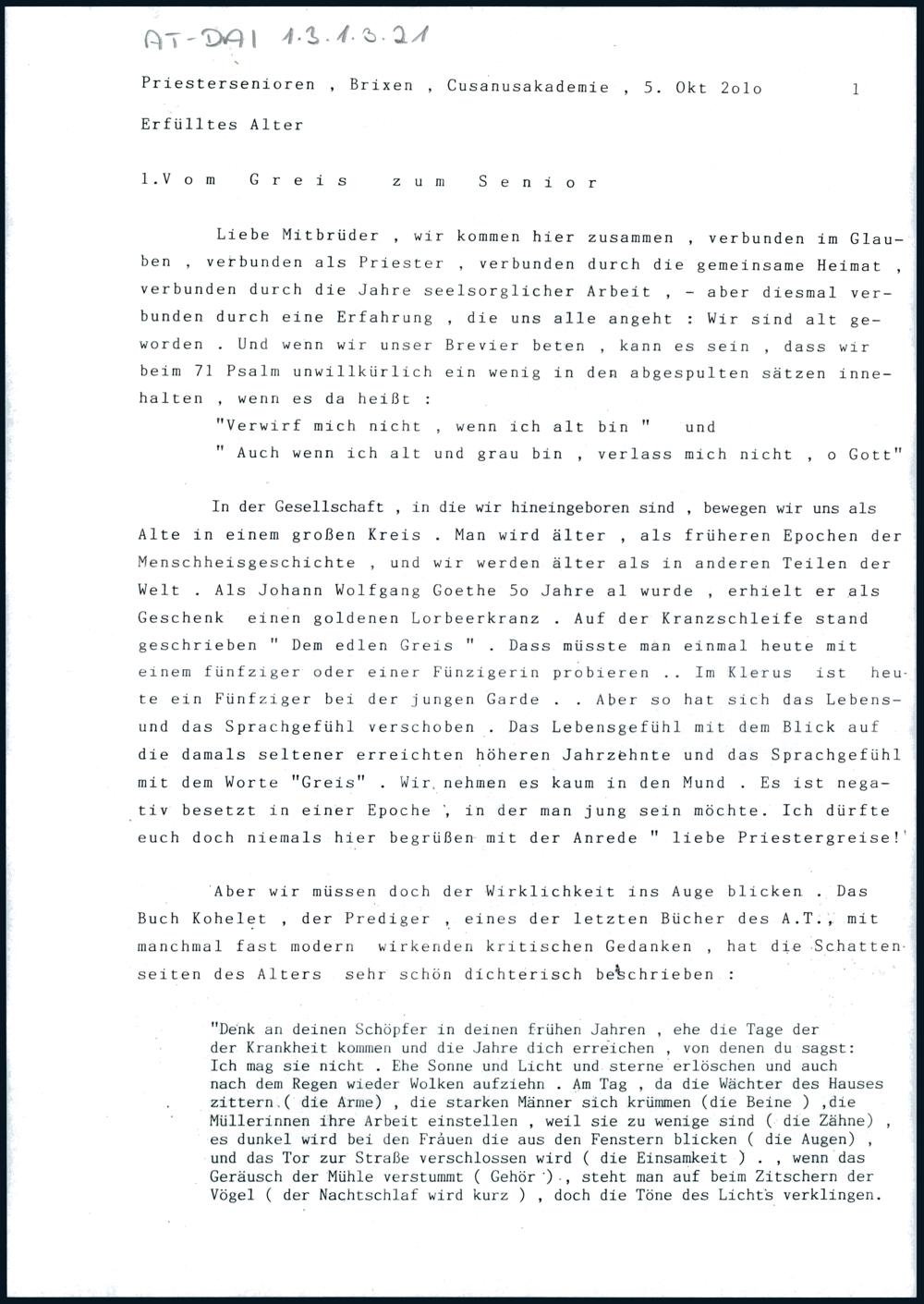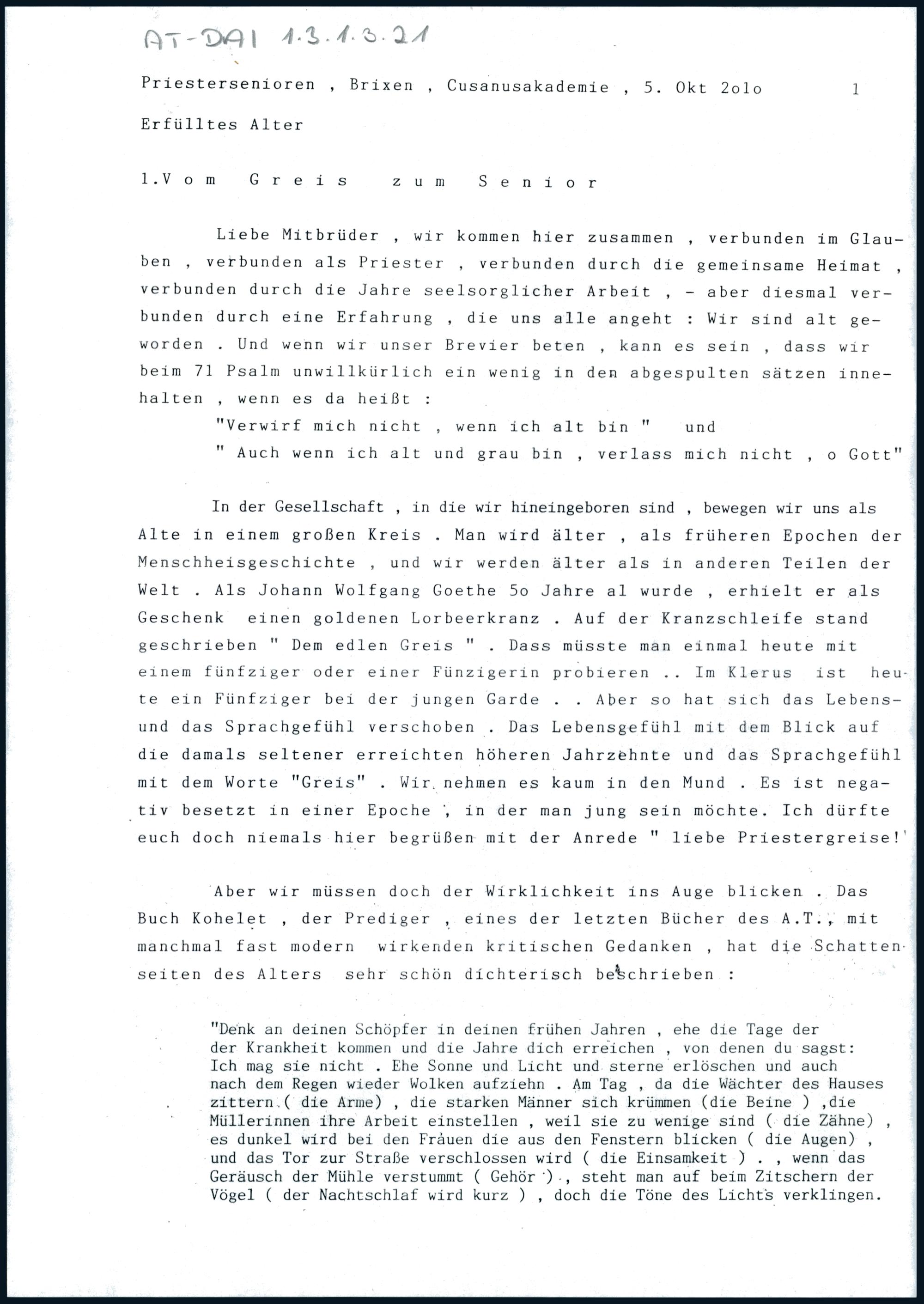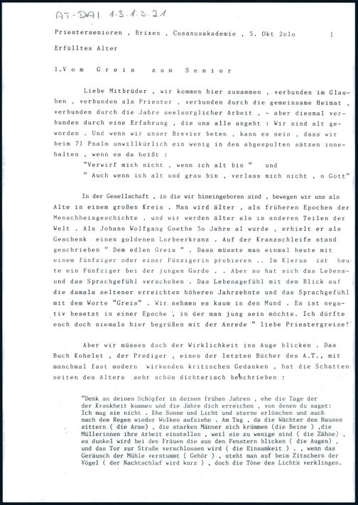 "Auch wenn ich alt und grau bin, verlass mich nicht, mein Gott!"