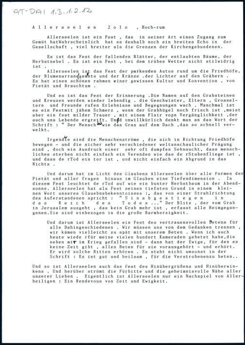 Allerseelen ist ein Nachspiel von Allerheiligen: Ein Rendevous von Zeit und Ewigkeit