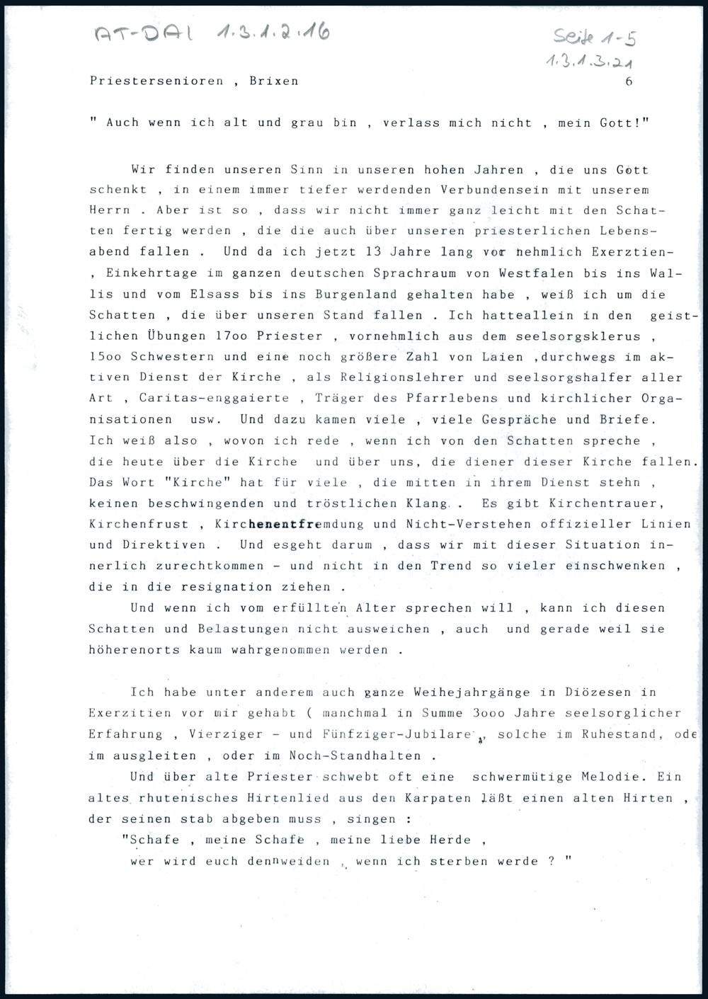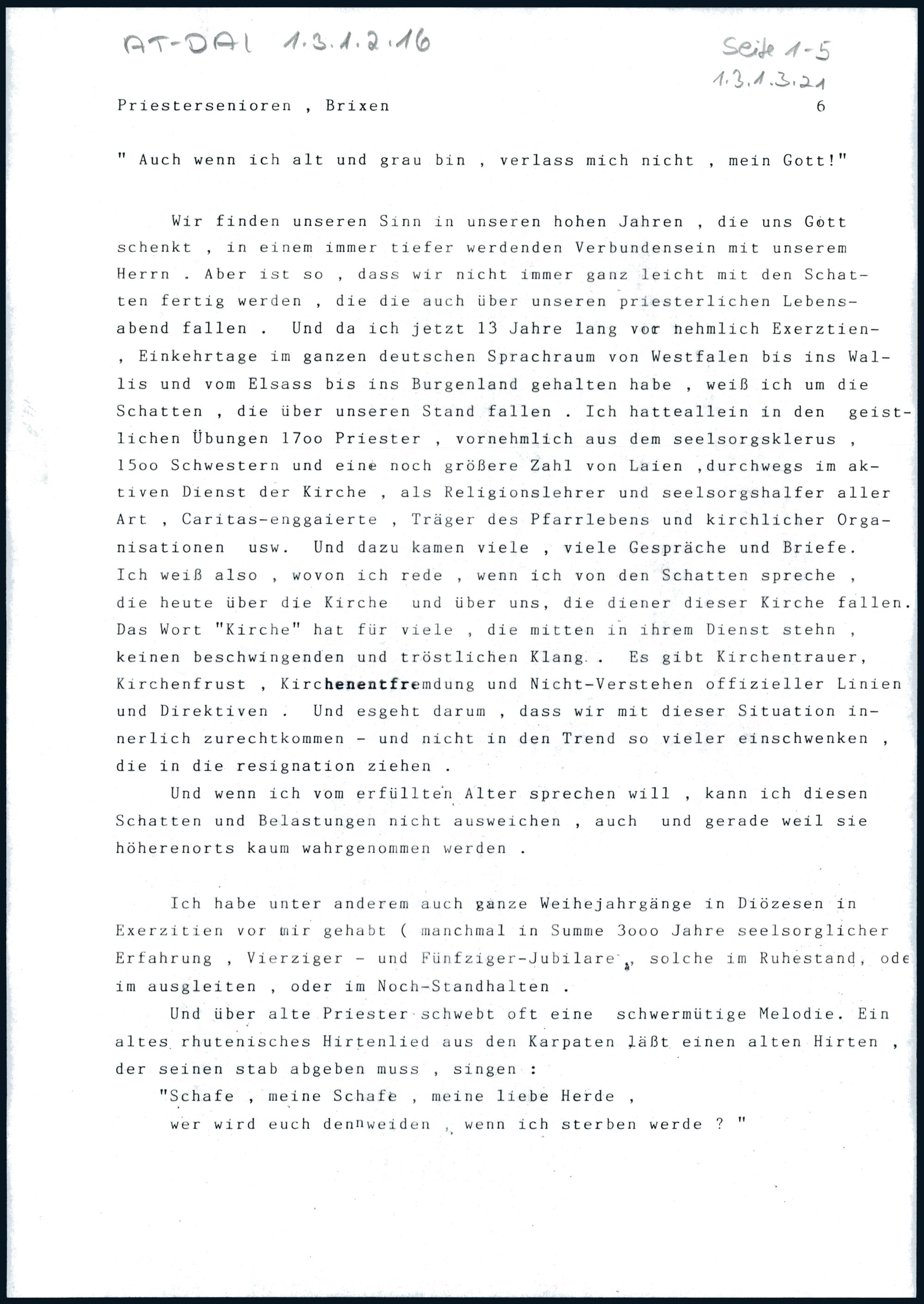 Auch wenn ich alt und grau bin, verlass mich nicht, mein Gott!