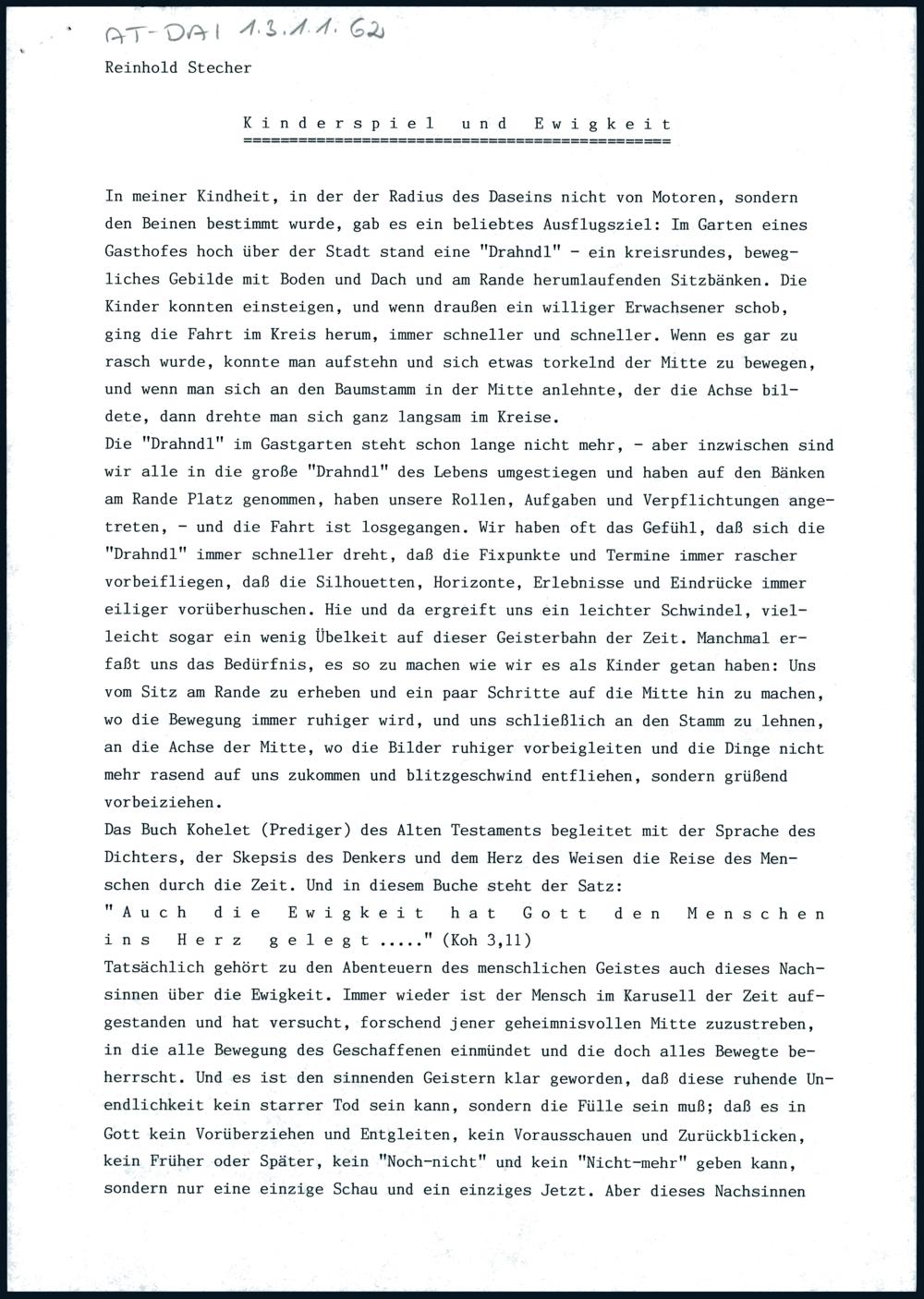 Kinderspiel und Ewigkeit