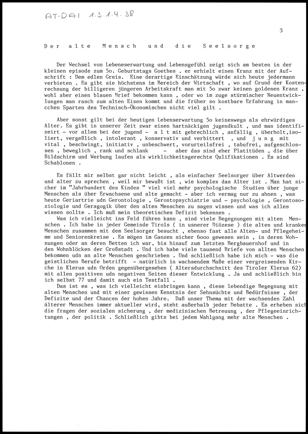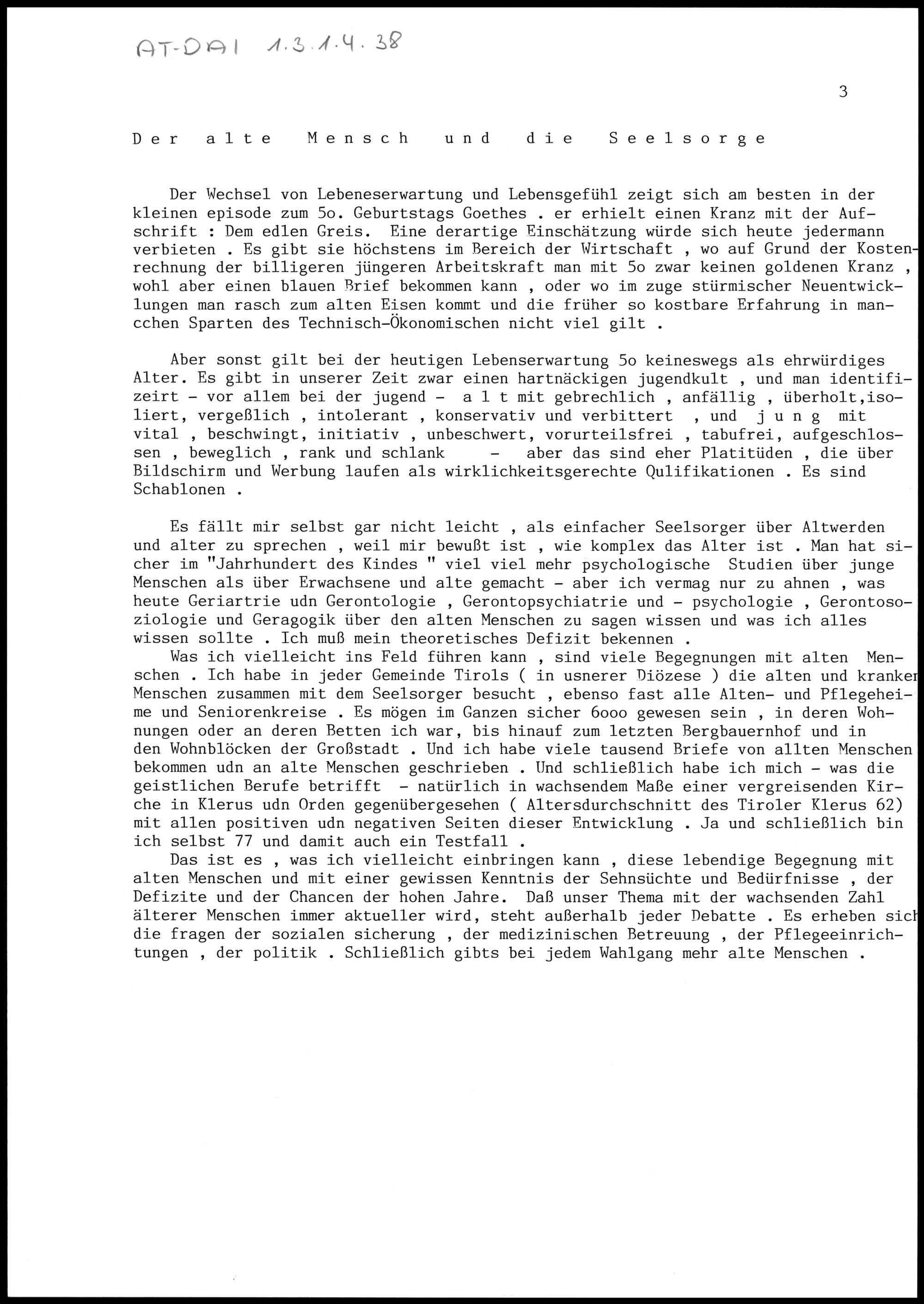 Der alte Mensch und die Seelsorge