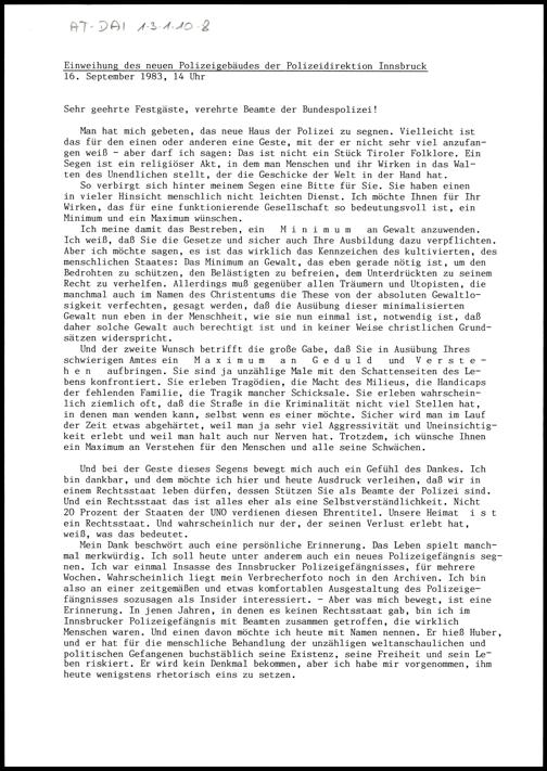 Einweihung des neuen Polizeigebäudes der Polizeidirektion Innsbruck