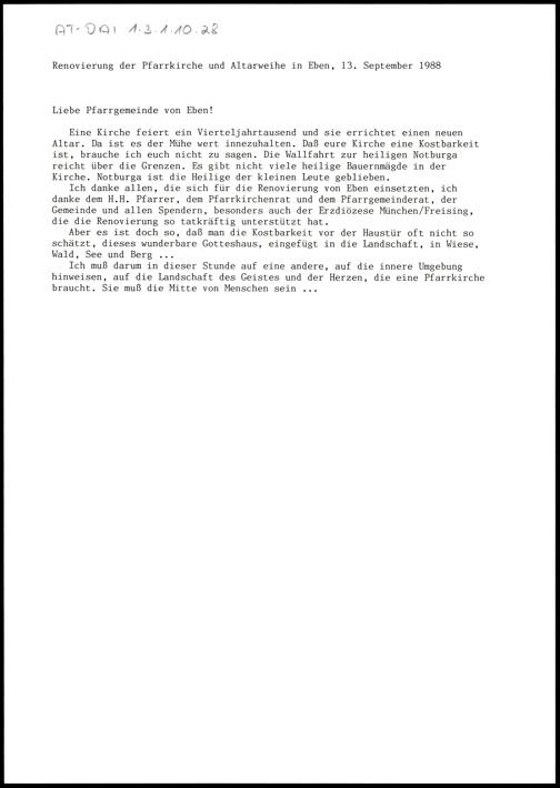 Renovierung der Pfarrkirche und Altarweihe in Eben