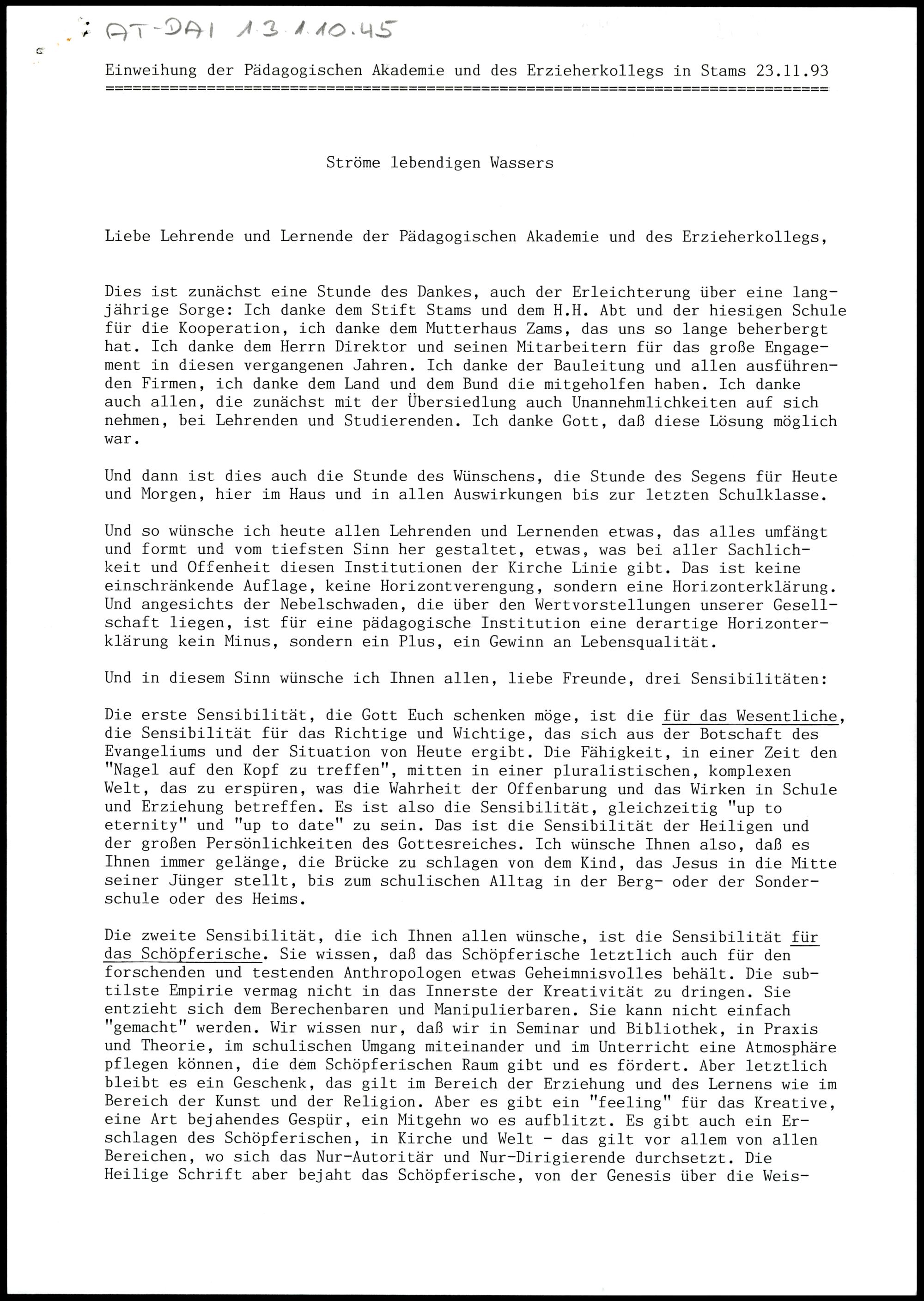 Einweihung der Pädagogischen Akademie und des Erzieherkollegs in Stams