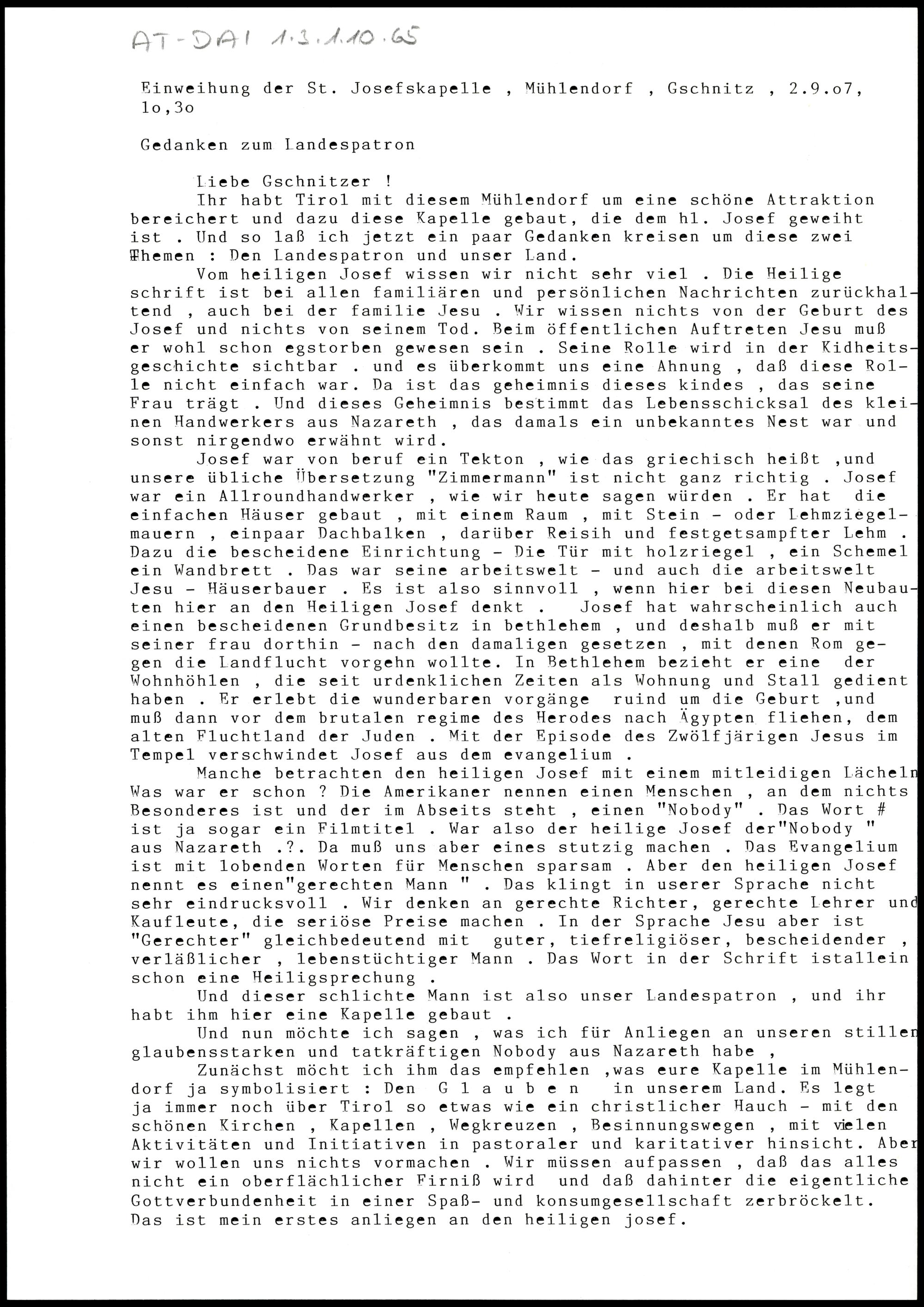 Einweihung der St. Josefskapelle, Mühlendorf, Gschnitz