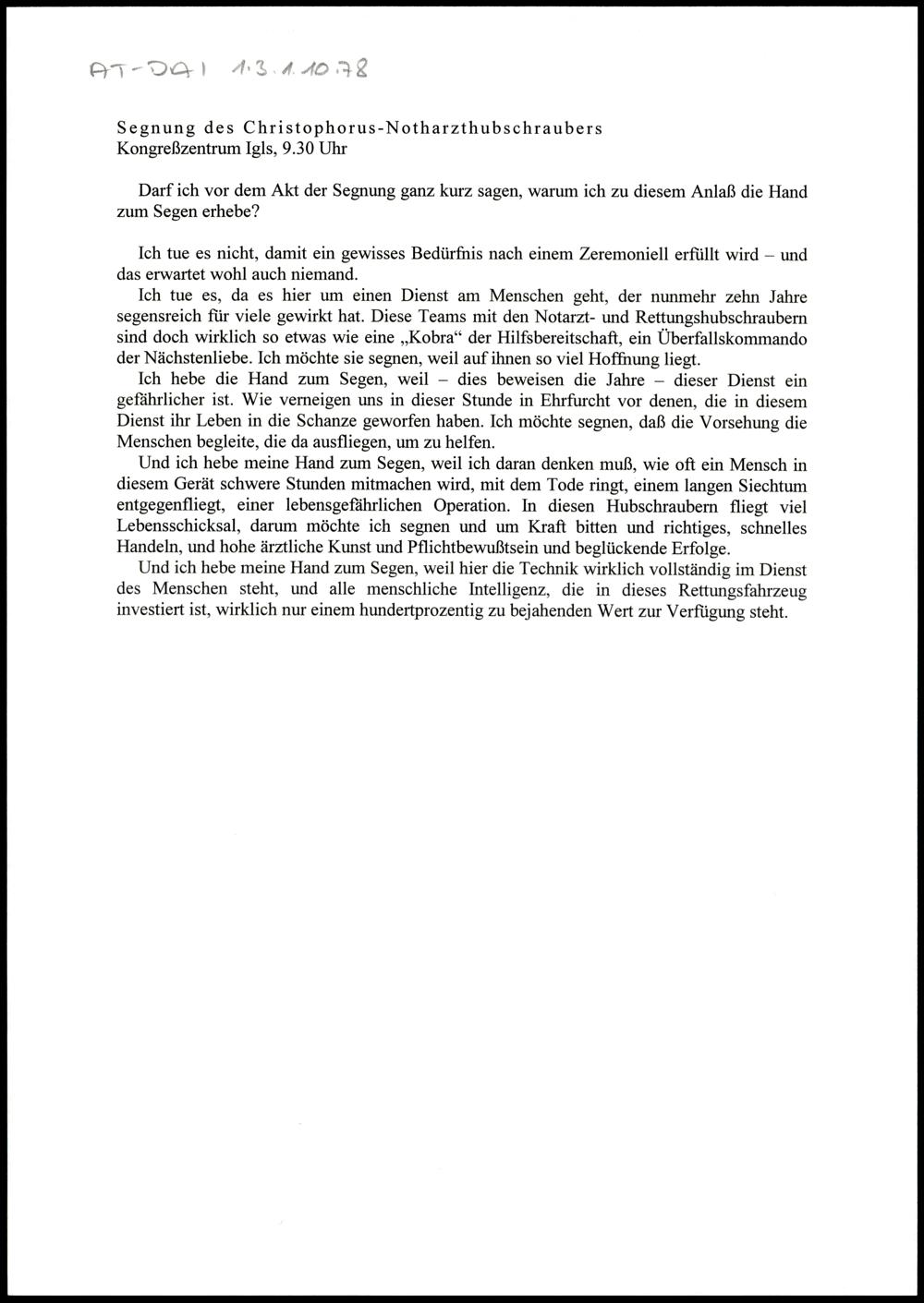 Segnung des Christophorus-Notarzthubschraubers