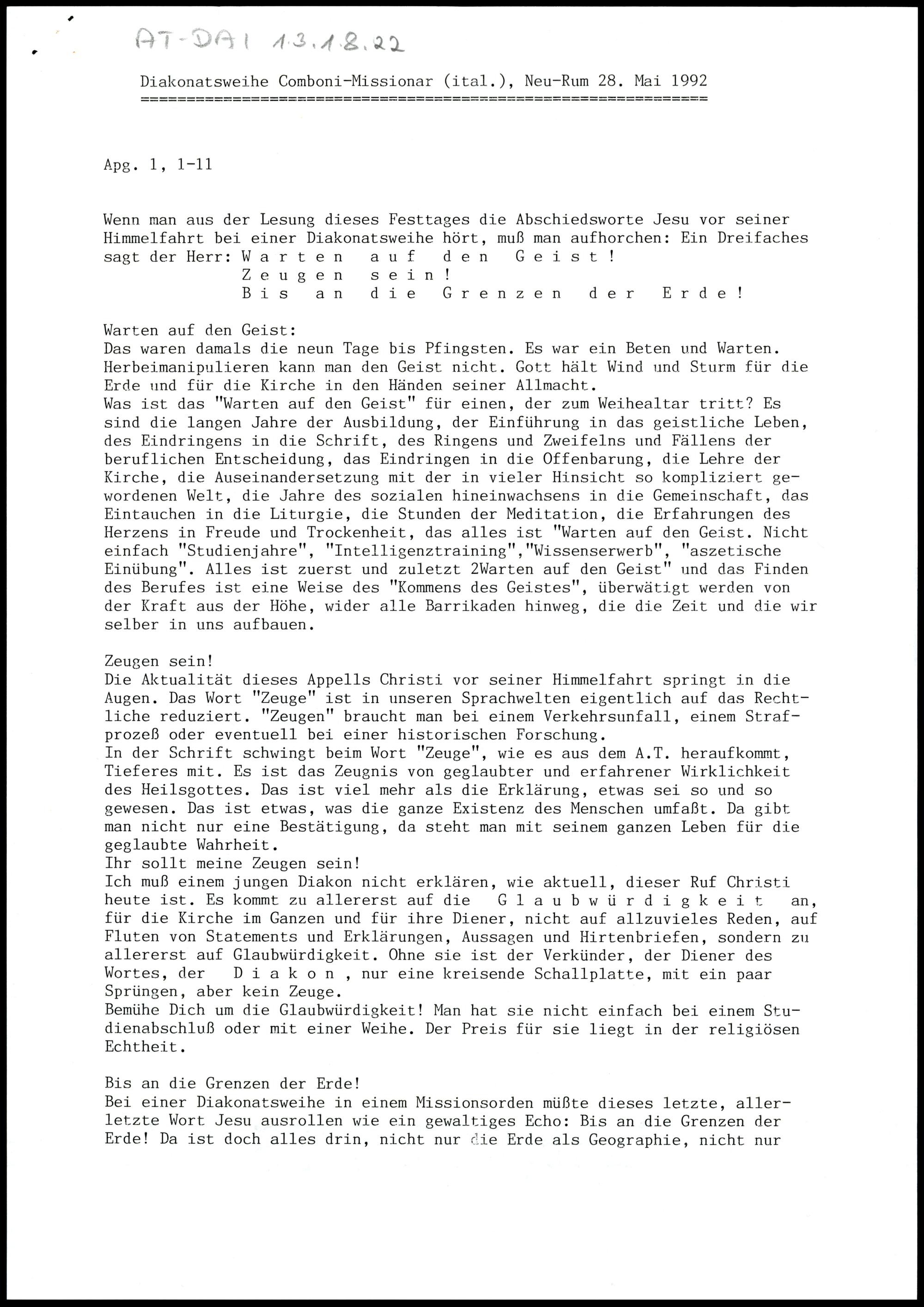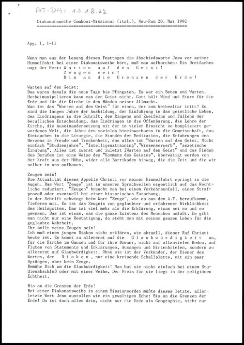 Diakonatsweihe Comboni-Missionar