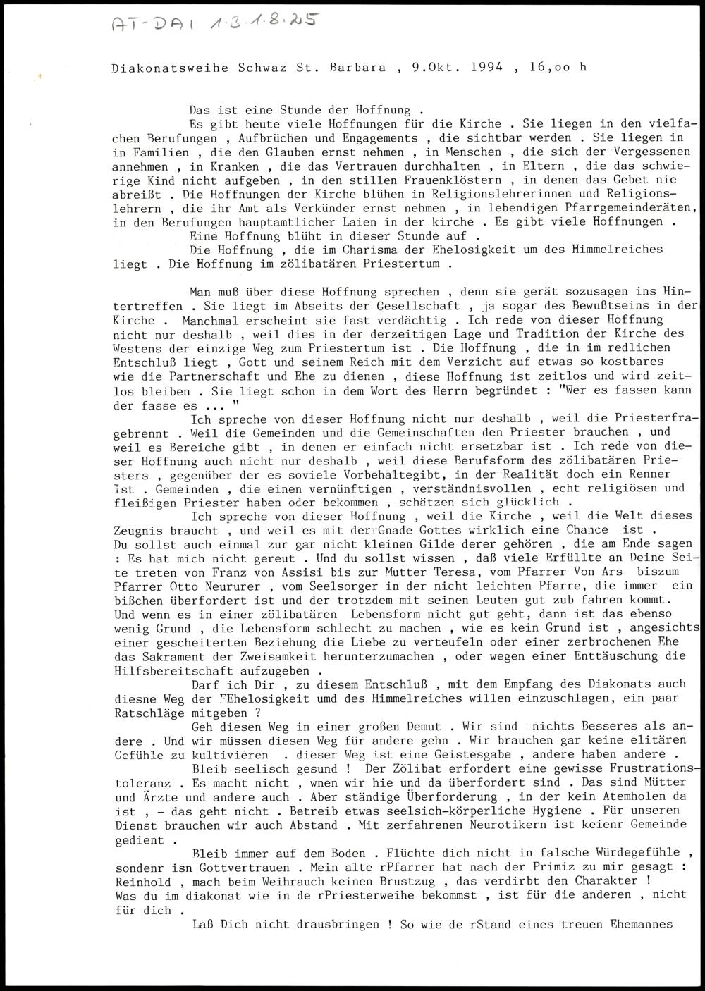 Diakonatsweihe Herbert Kaltschmied, Schwaz St. Barbara