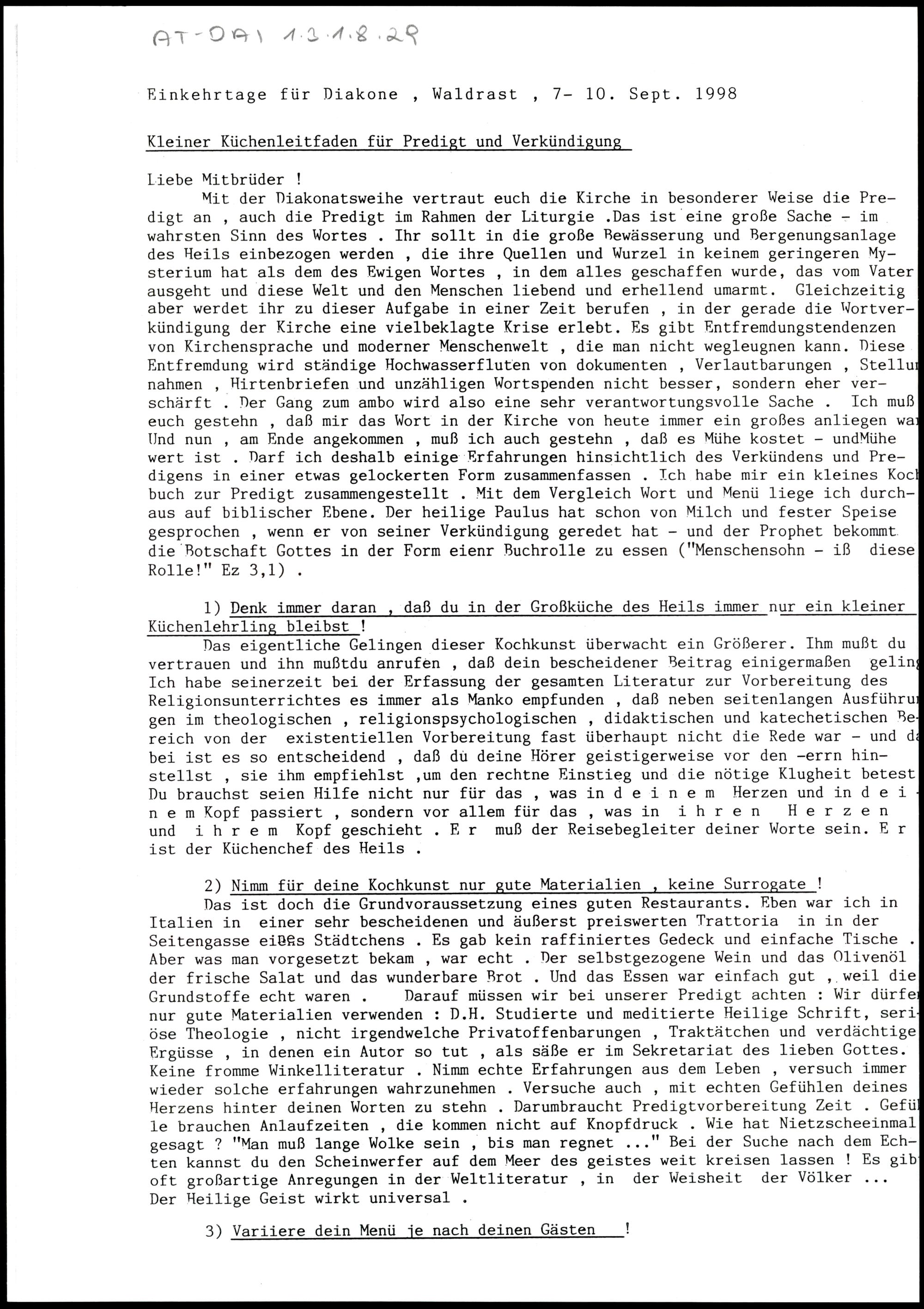 Einkehrtage für Diakone