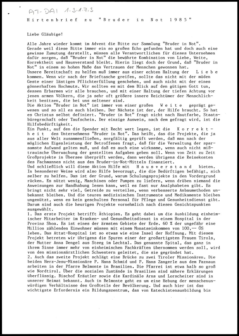 Hirtenbrief zu "Bruder in Not 1985"