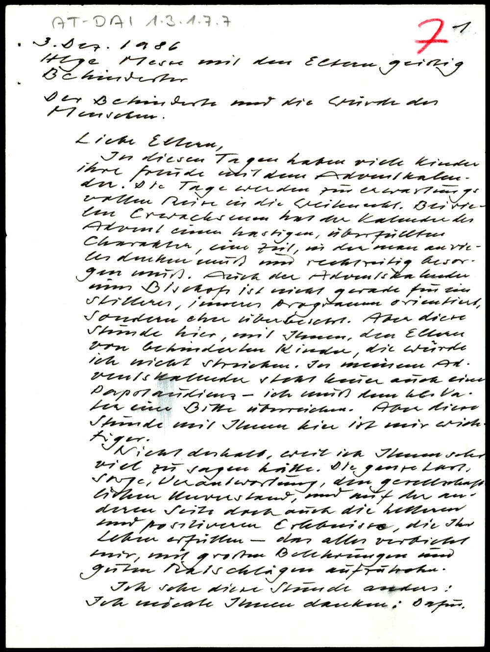 Heilige Messe mit den Eltern geistig Behinderter