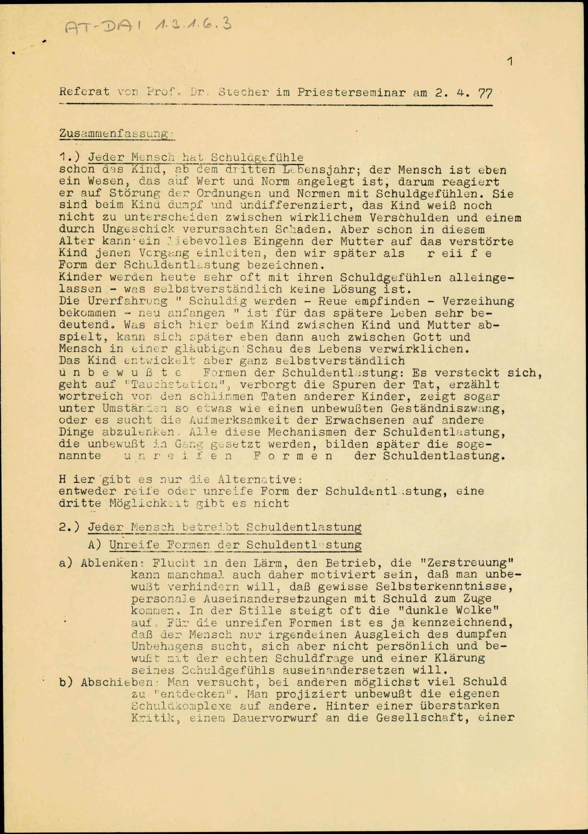 Schuldgefühle - Schuldentlastung