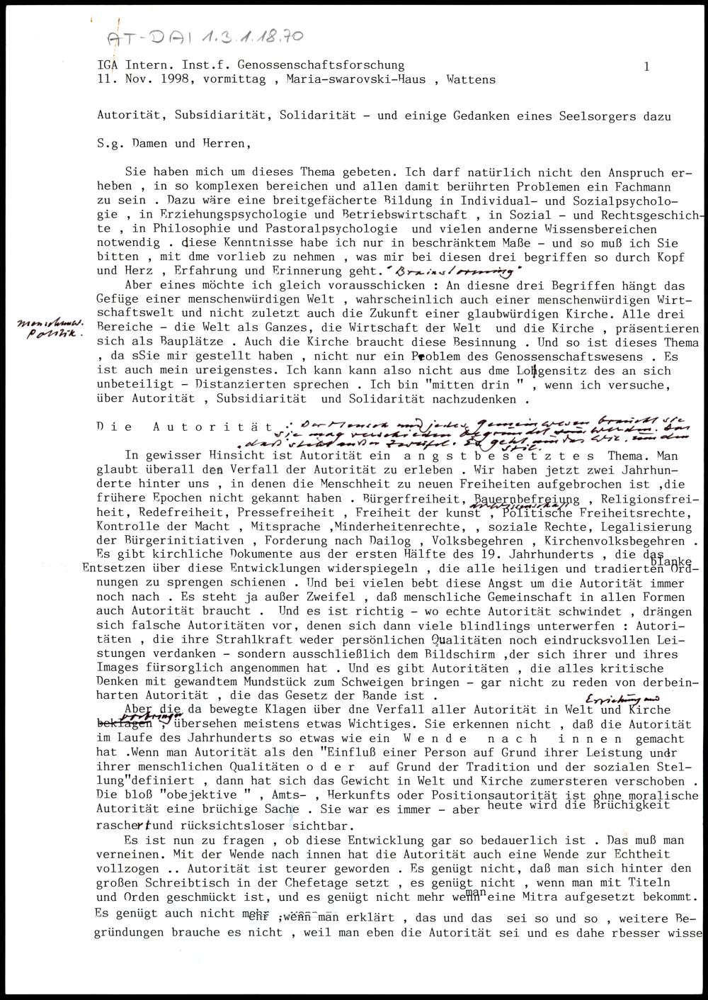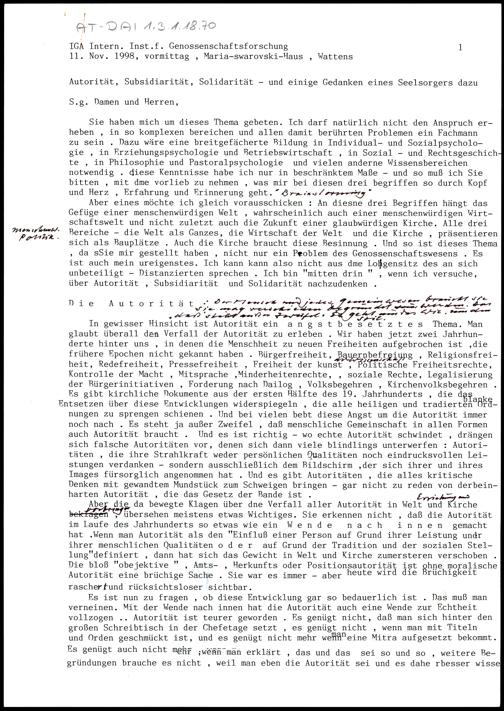 Autorität, Subsidiarität, Solidarität - und einige Gedanken eines Seelsorgers dazu