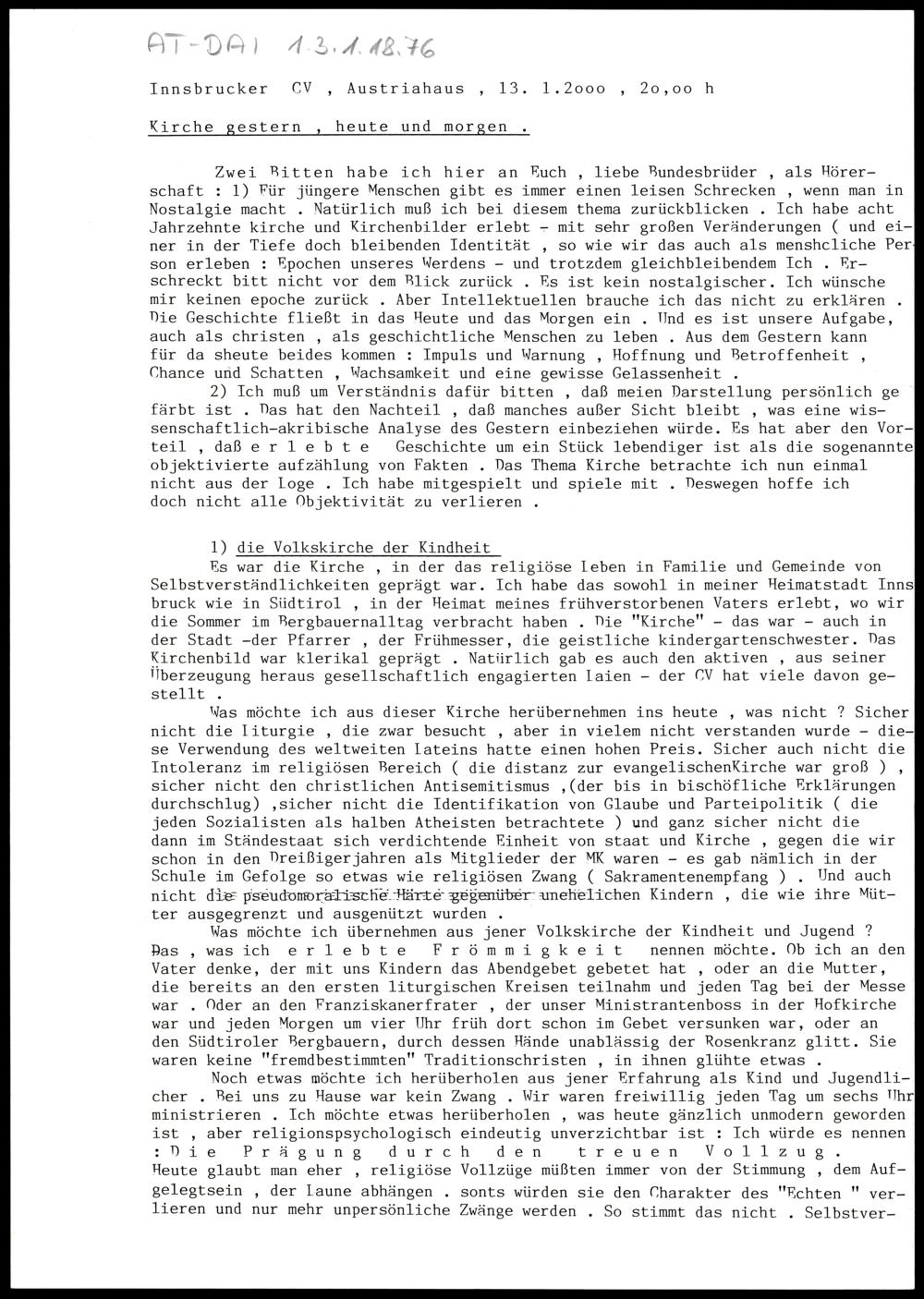 Kirche gestern, heute und morgen
