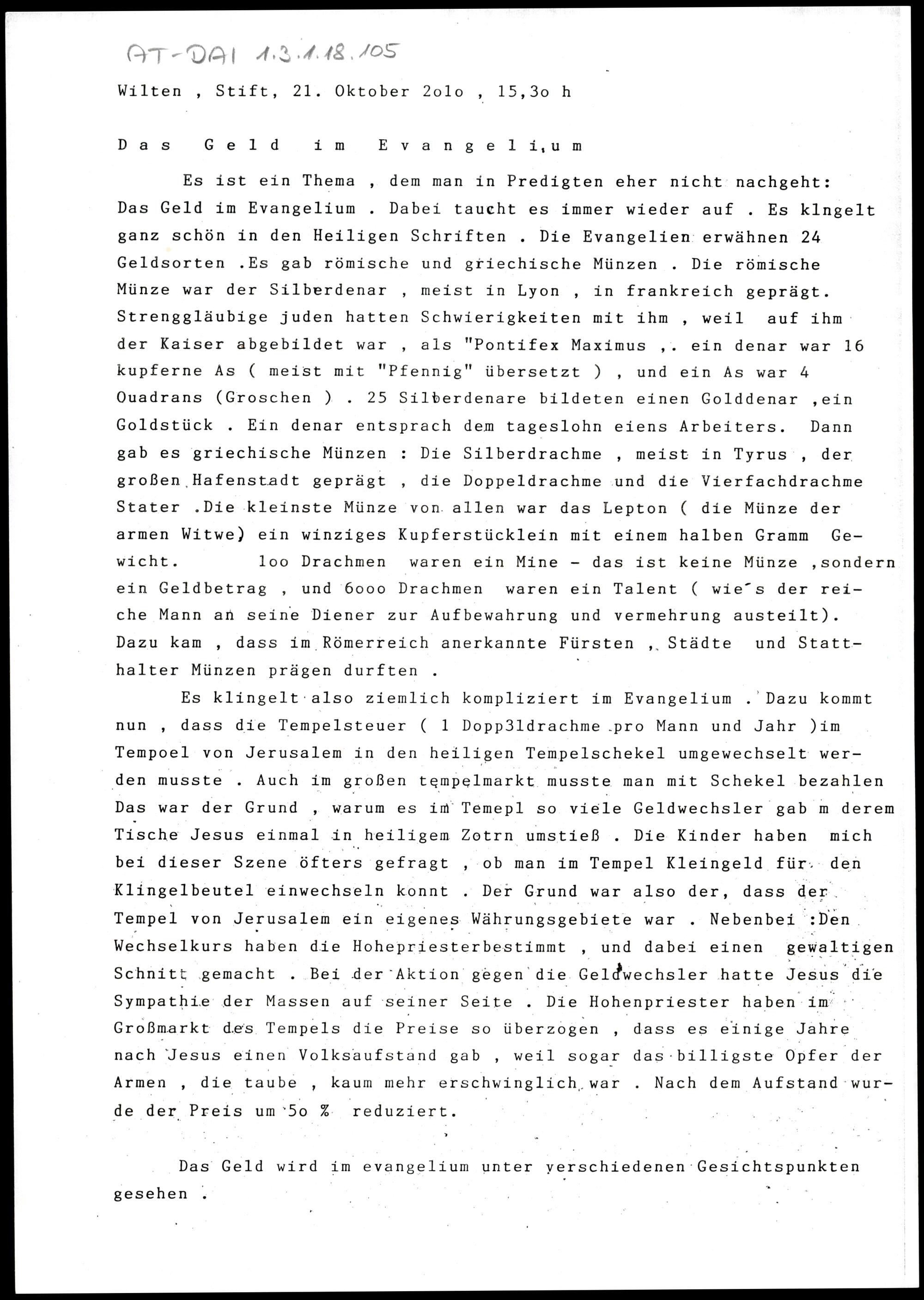 Das Geld im Evangelium