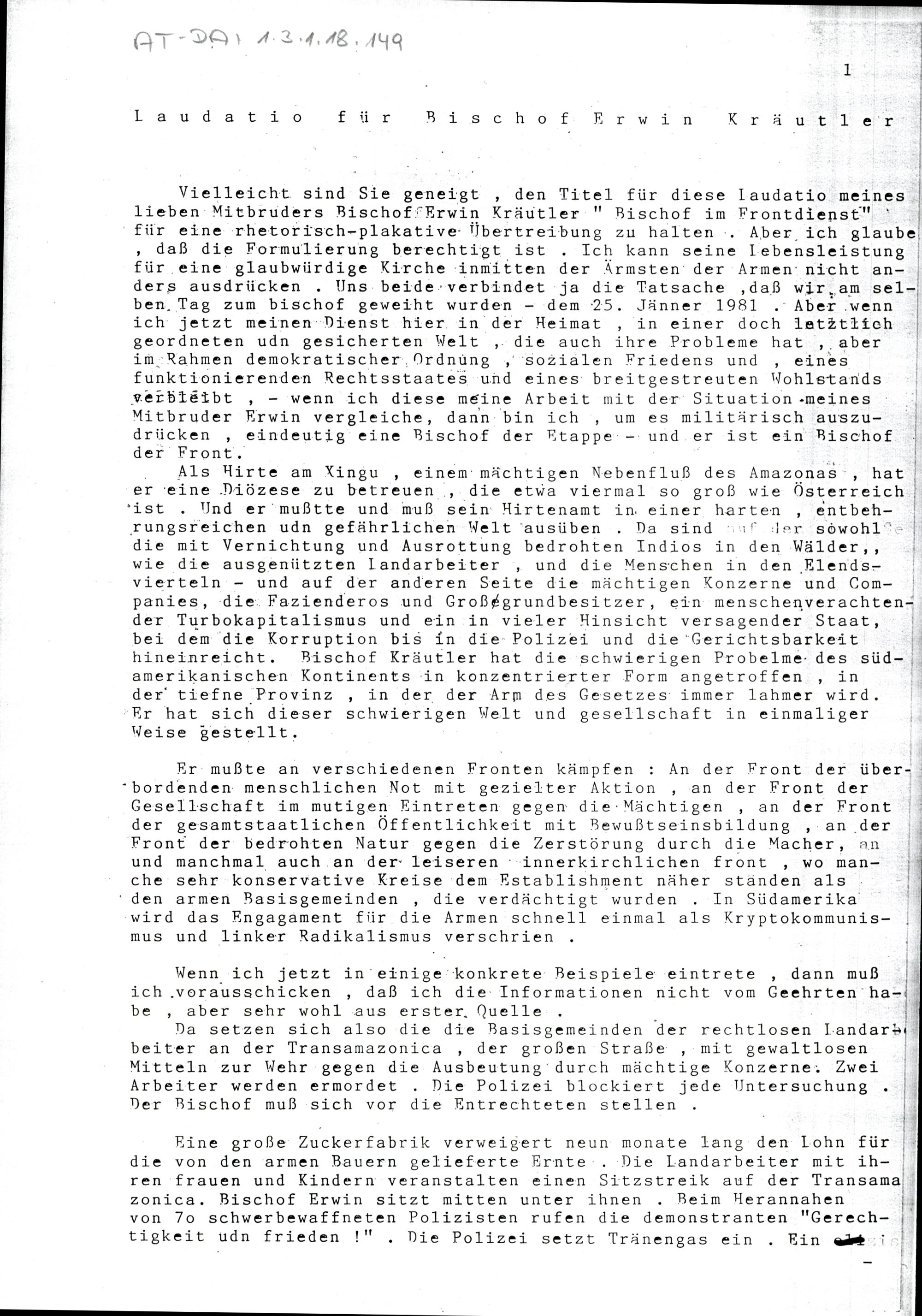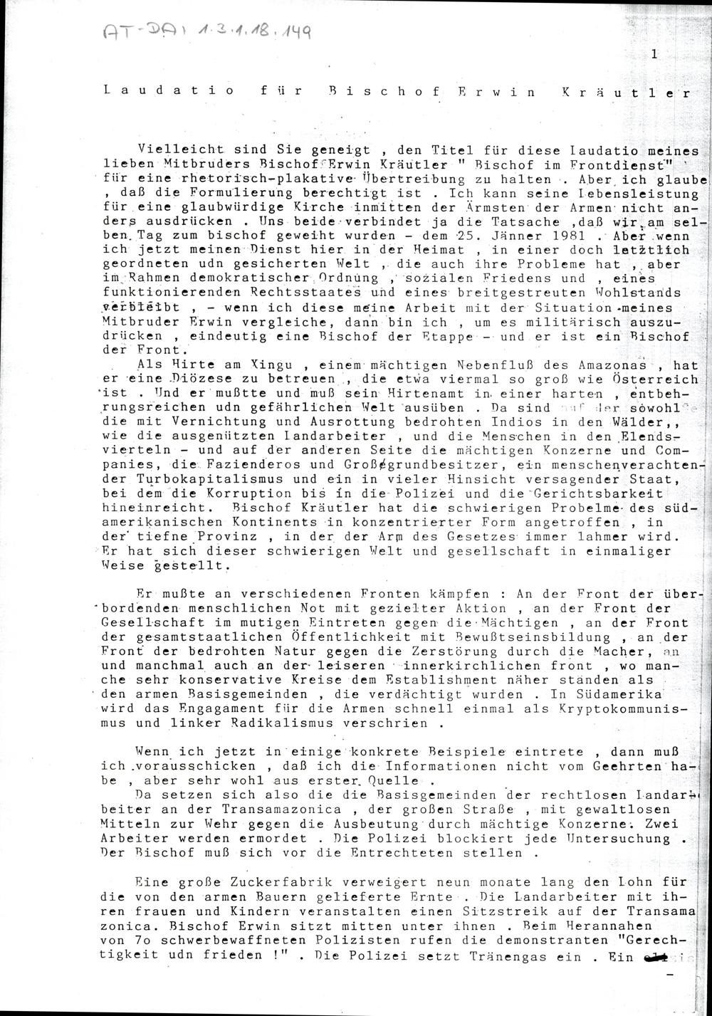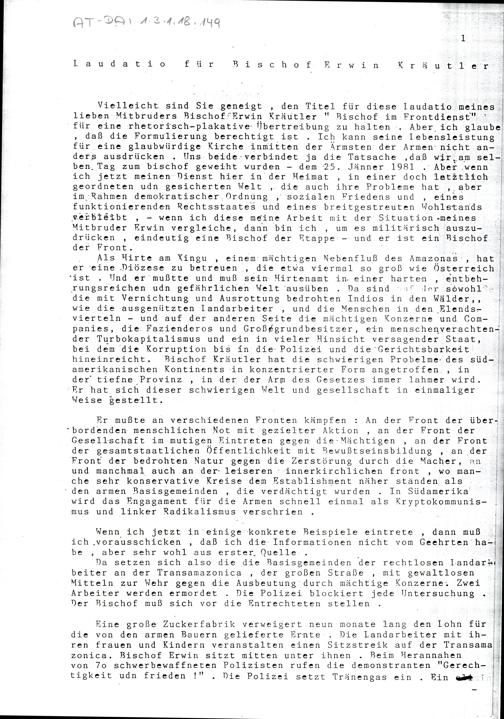 Laudatio für Bischof Erwin Kräutler