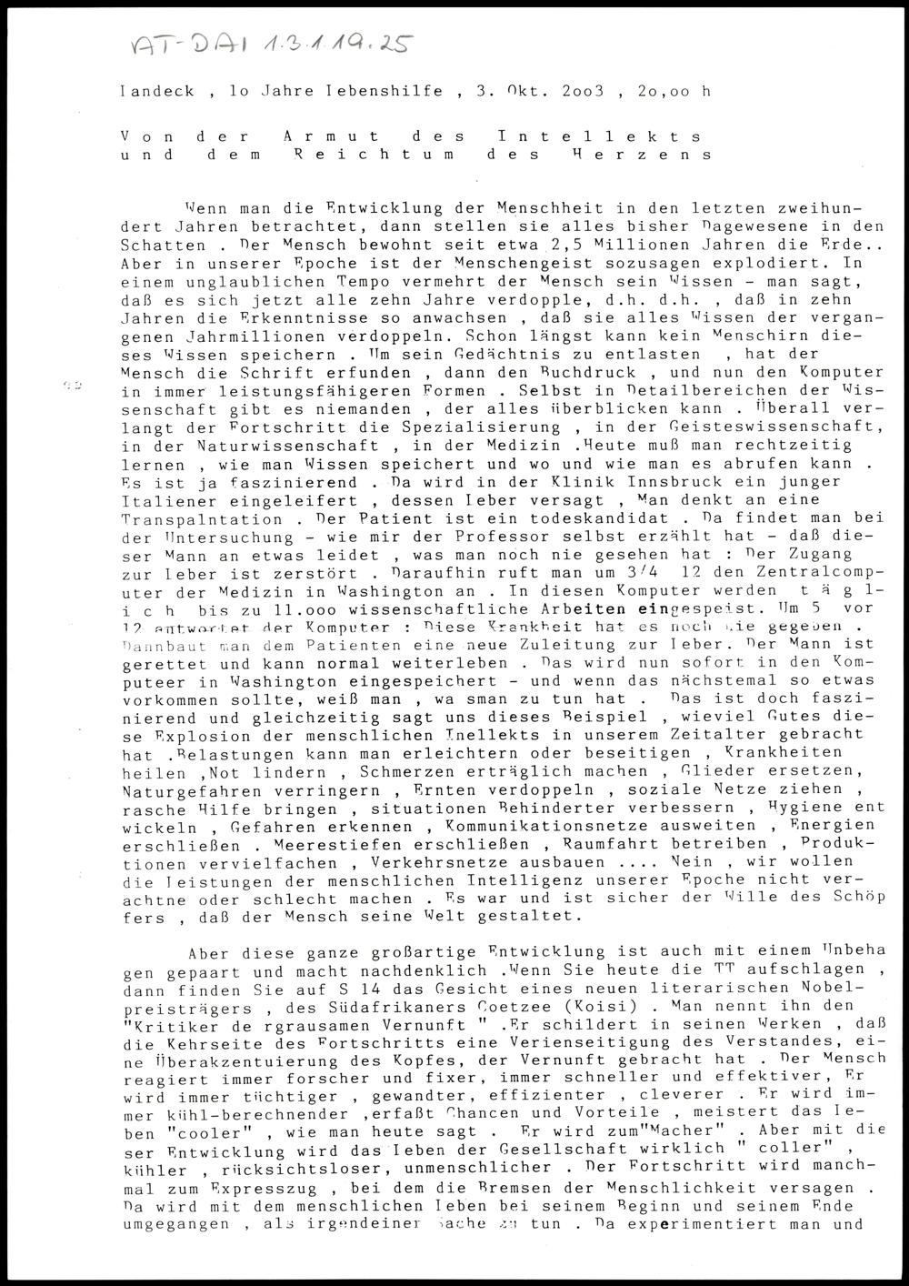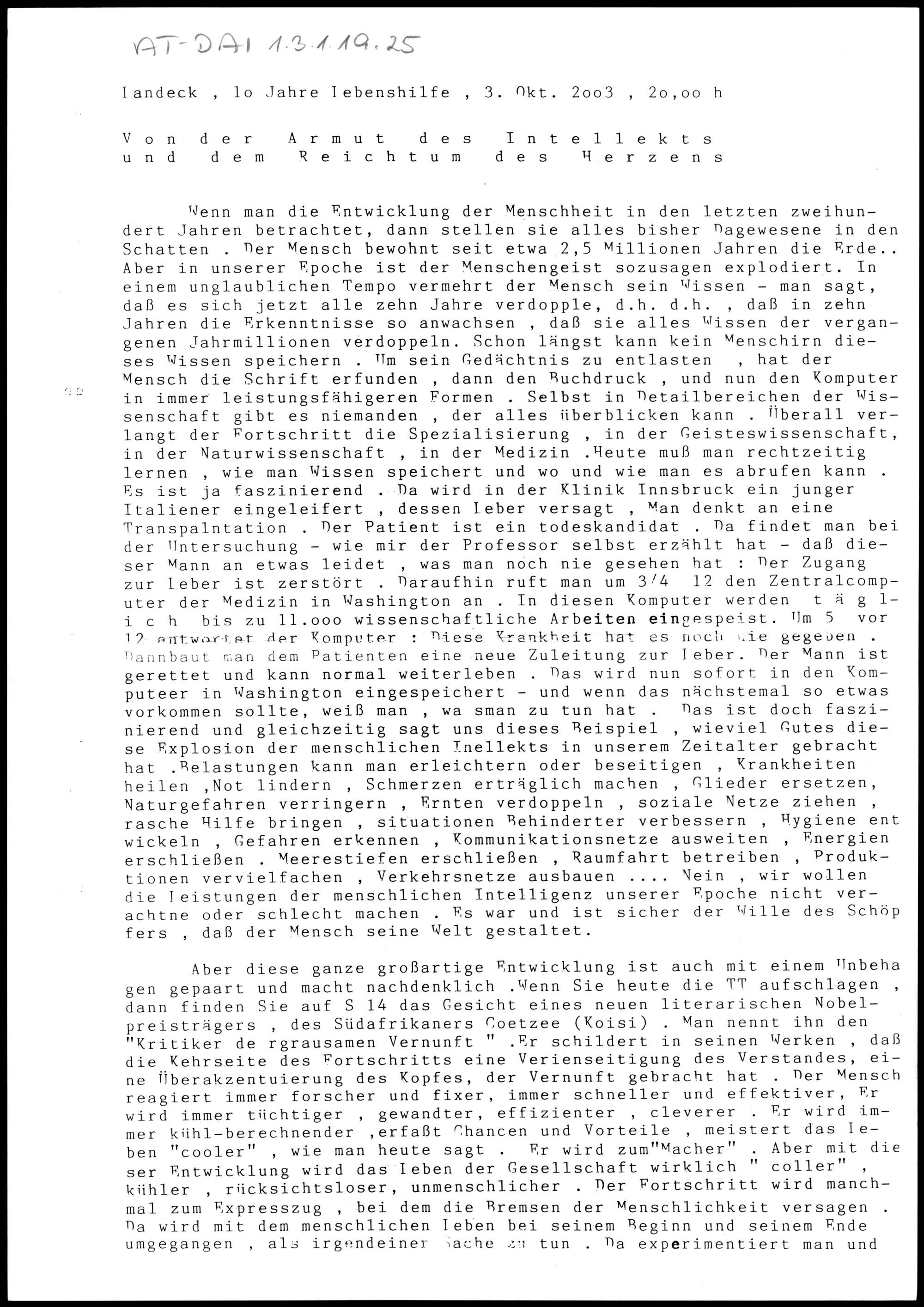 Von der Armut des Intellekts und dem Reichtum des Herzens