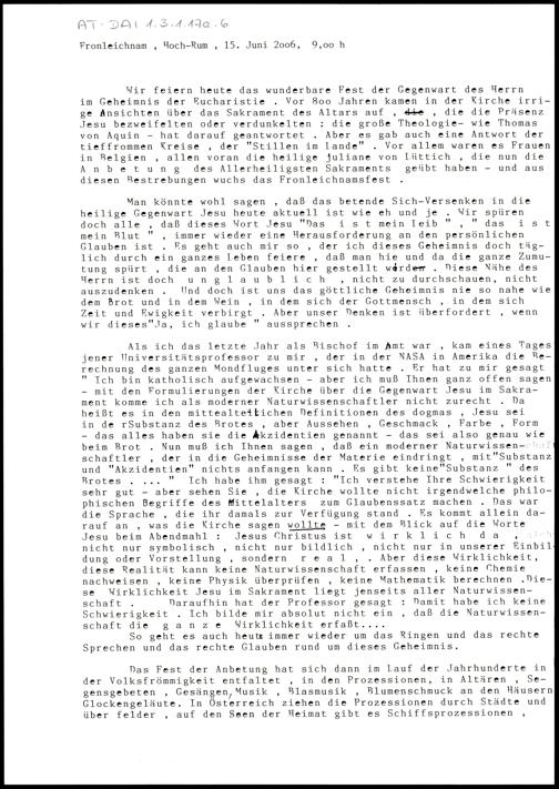 Wir feiern das wunderbare Fest der Gegenwart des Herrn im Geheimnis der Eucharistie