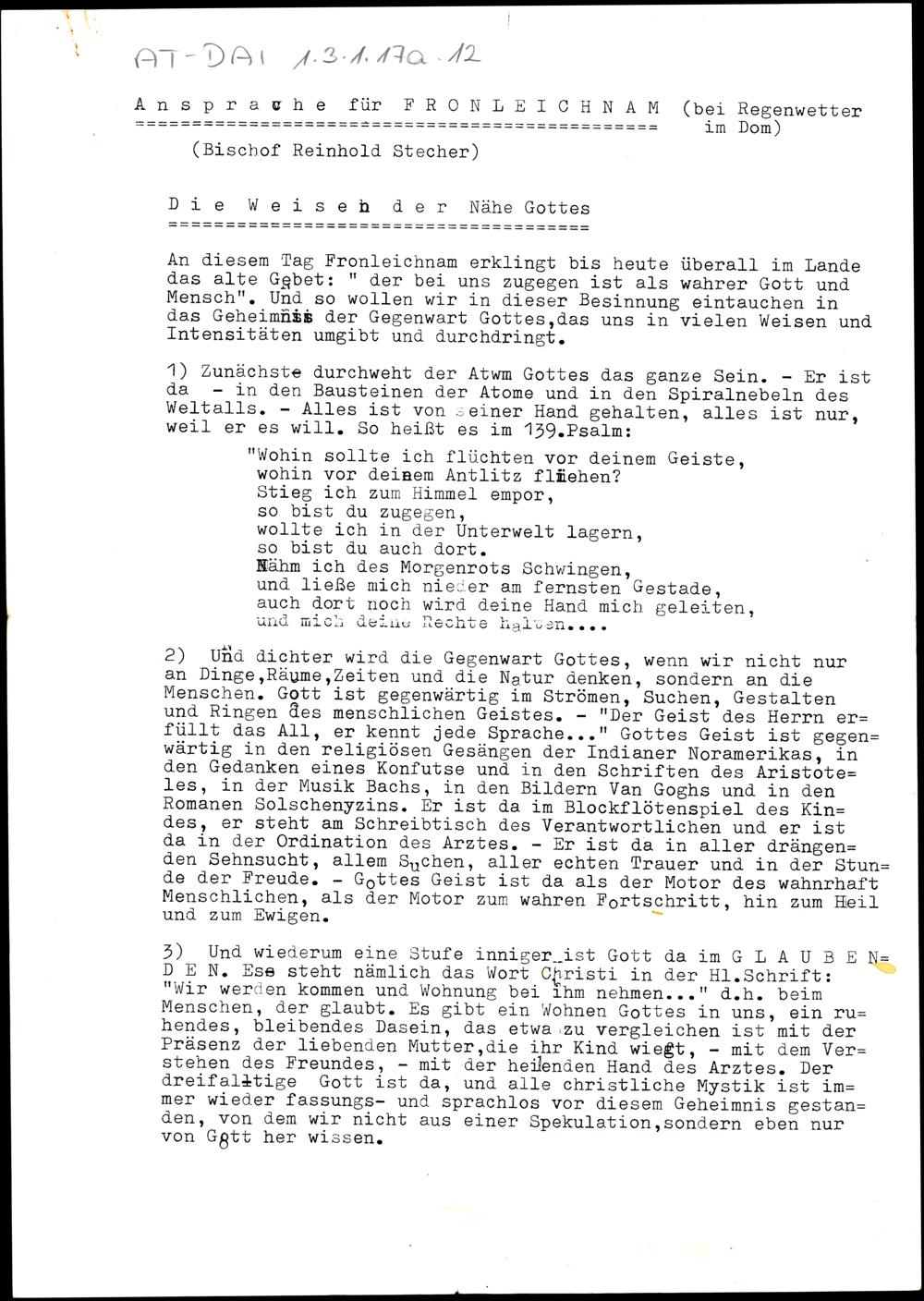 Nachlass Bischof Stecher