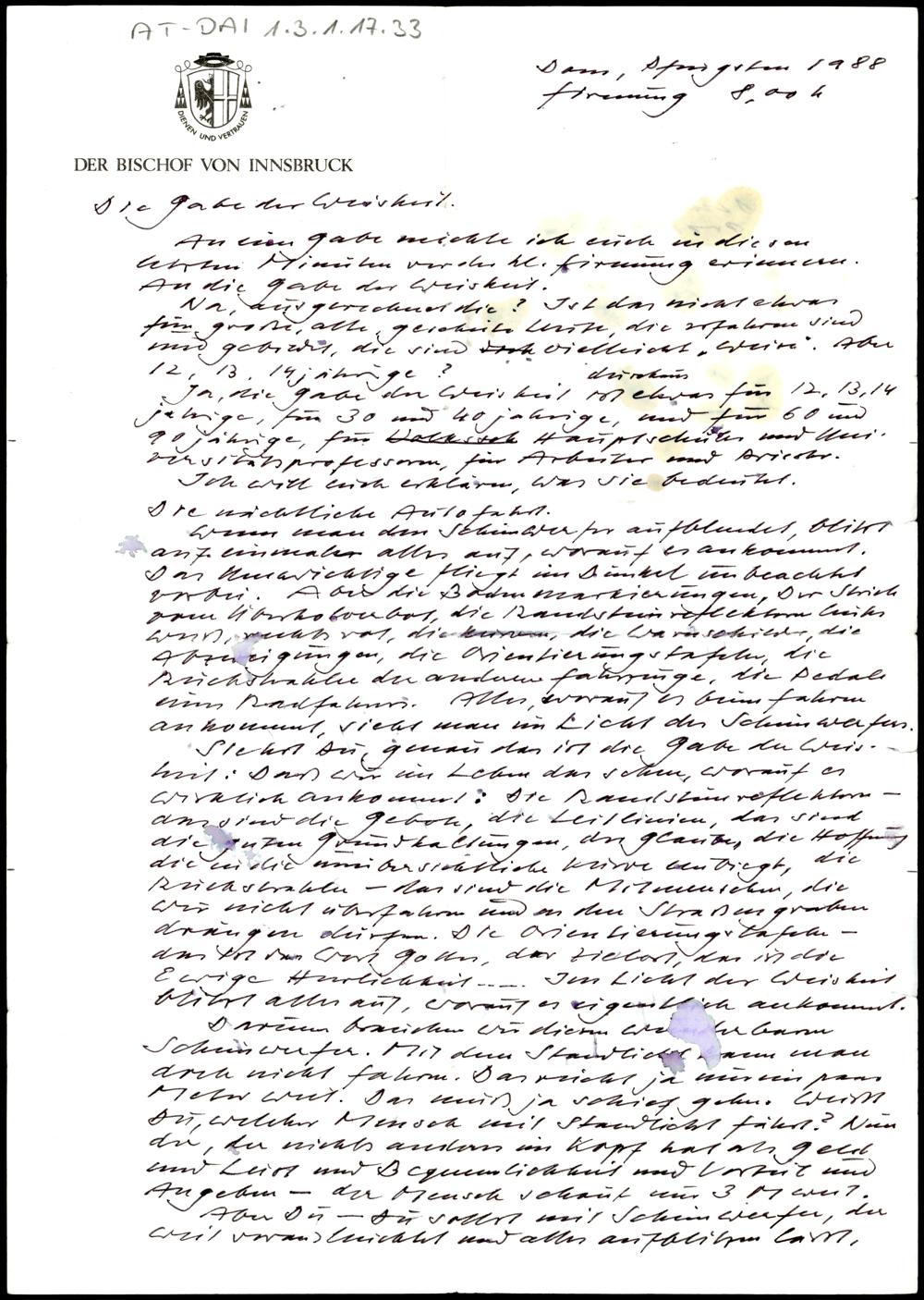 Nachlass Bischof Stecher