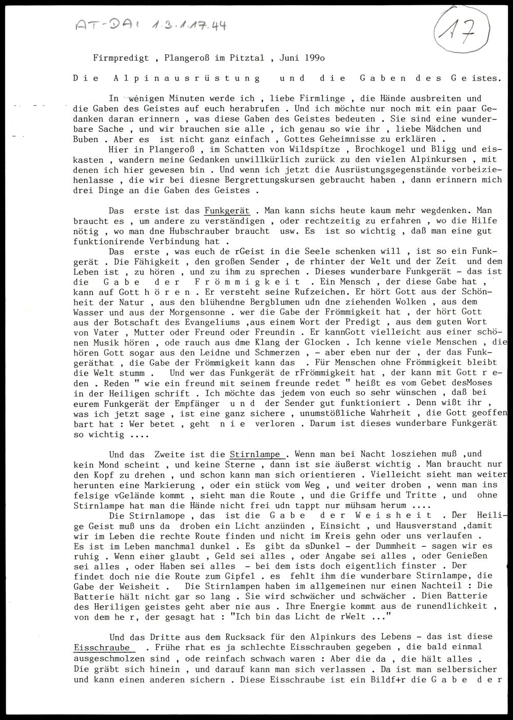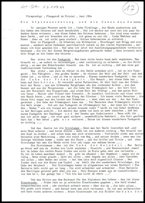 Die Alpinausrüstung und die Gaben des Geistes
