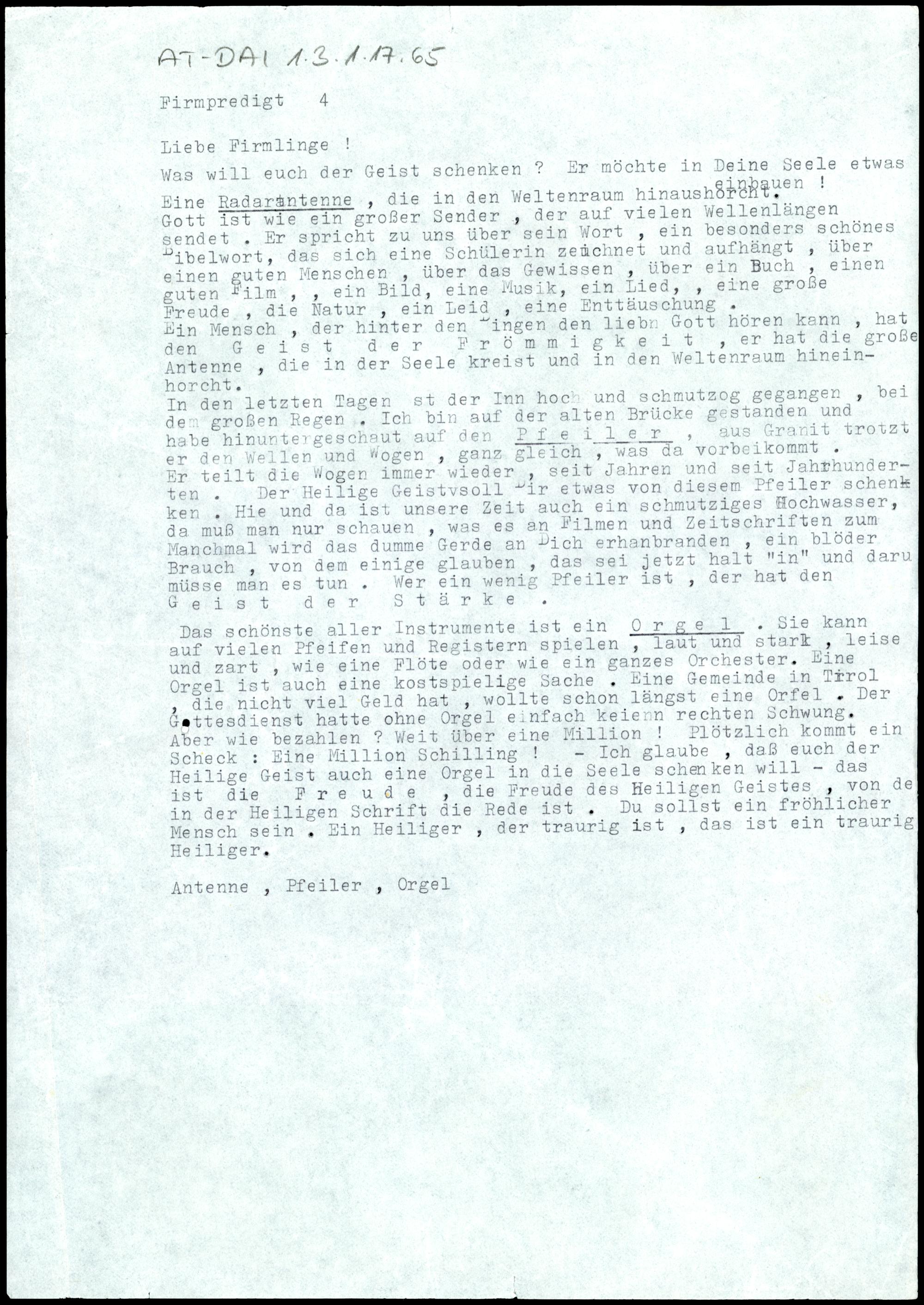 Radarantenne, Pfeiler, Orgel