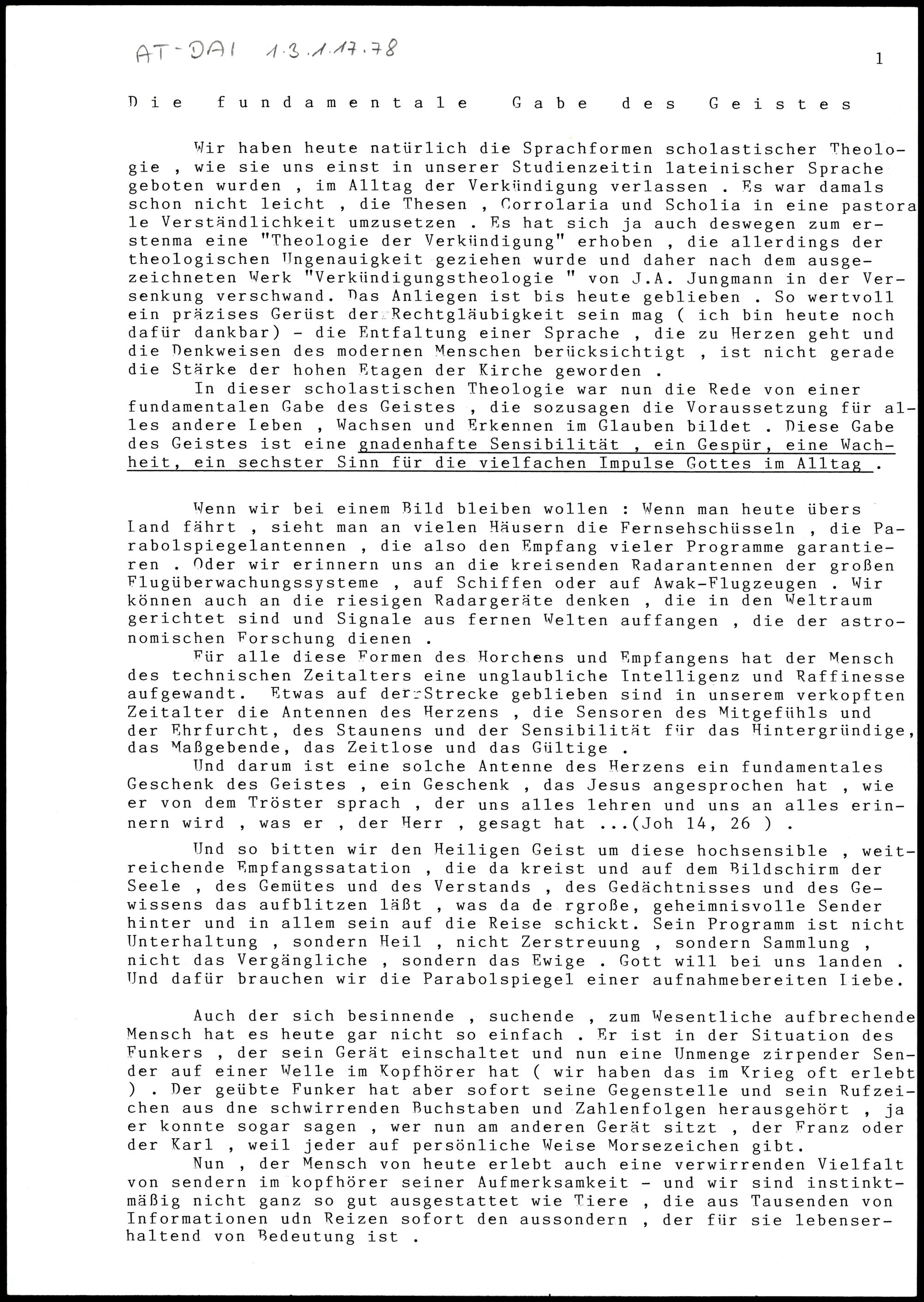 Die fundamentale Gabe des Geistes