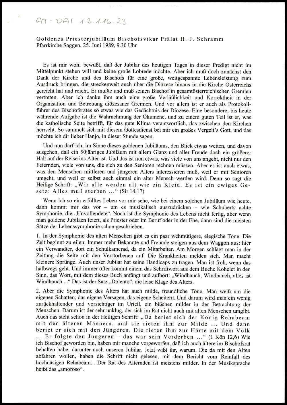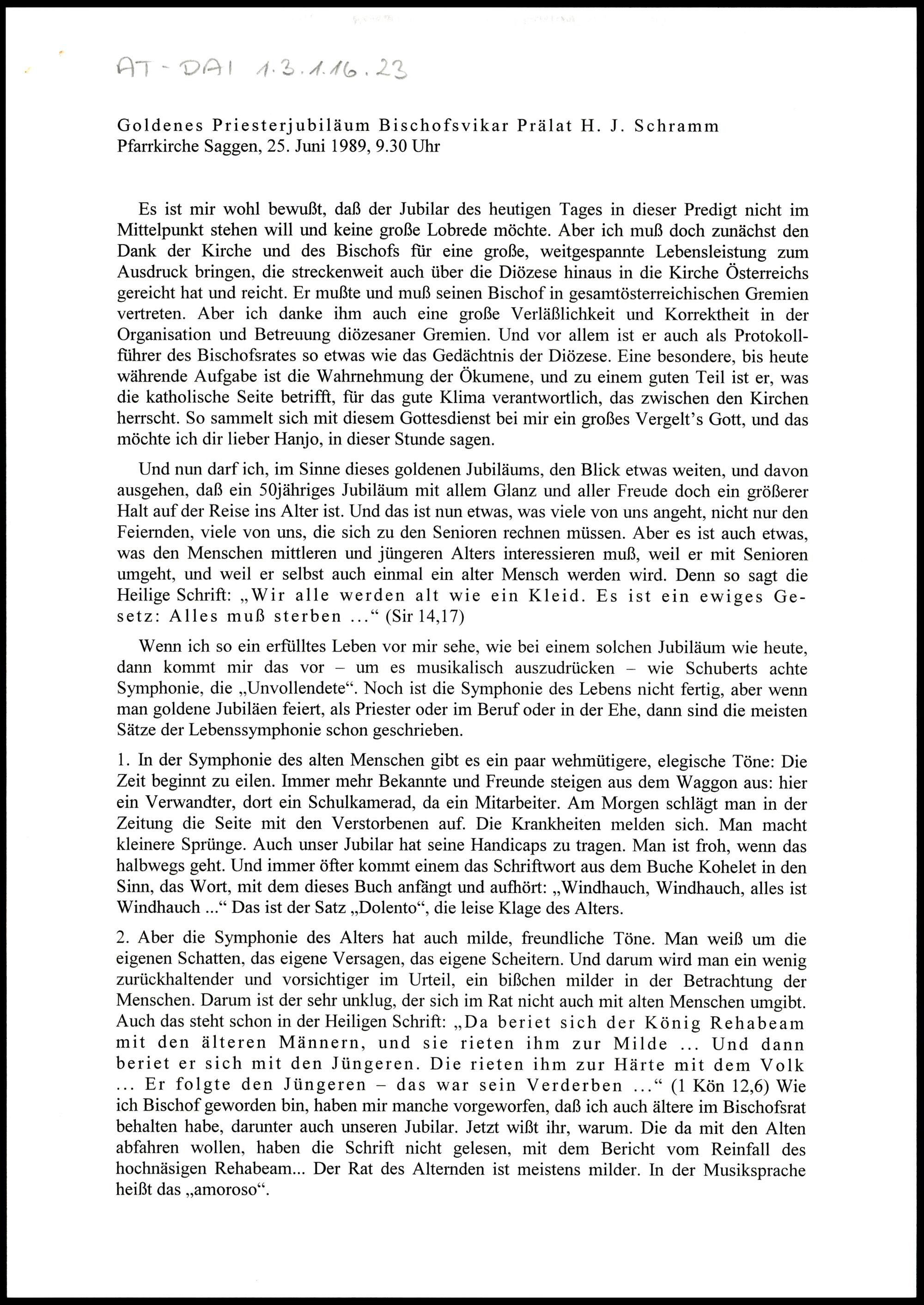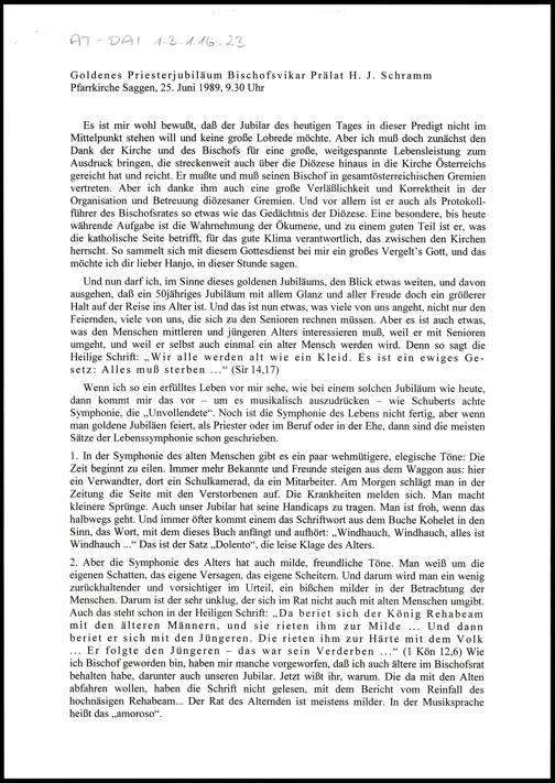 Goldenes Priesterjubiläum Bischofsvikar Prälat H. J. Schramm