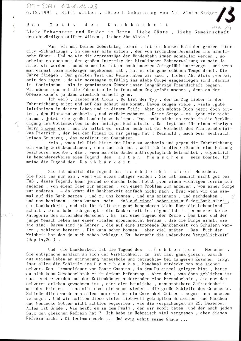 70. Geburtstag von Abt Alois Stöger