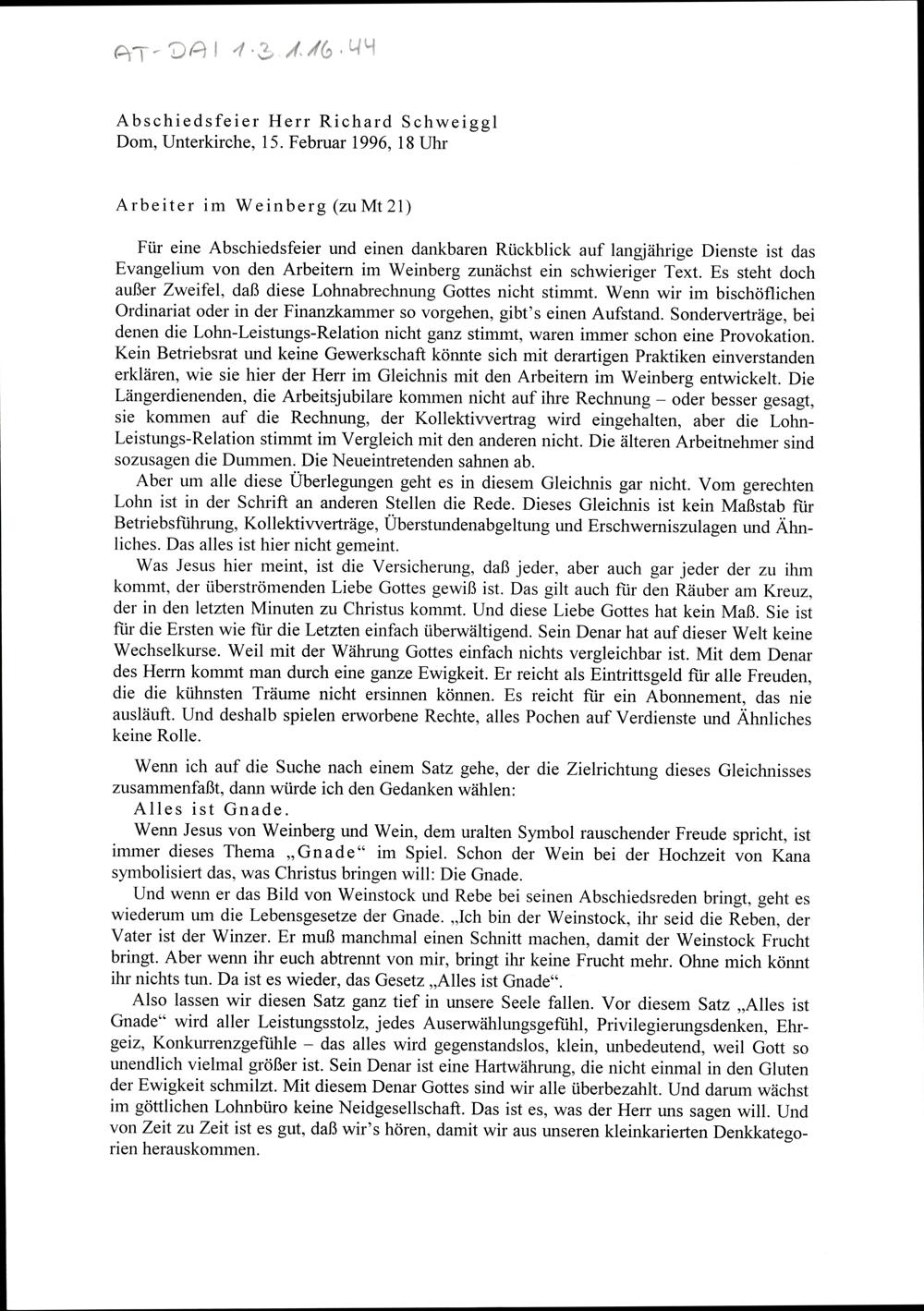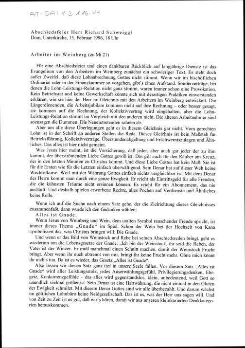 Abschiedsfeier Herr Richard Schweiggl