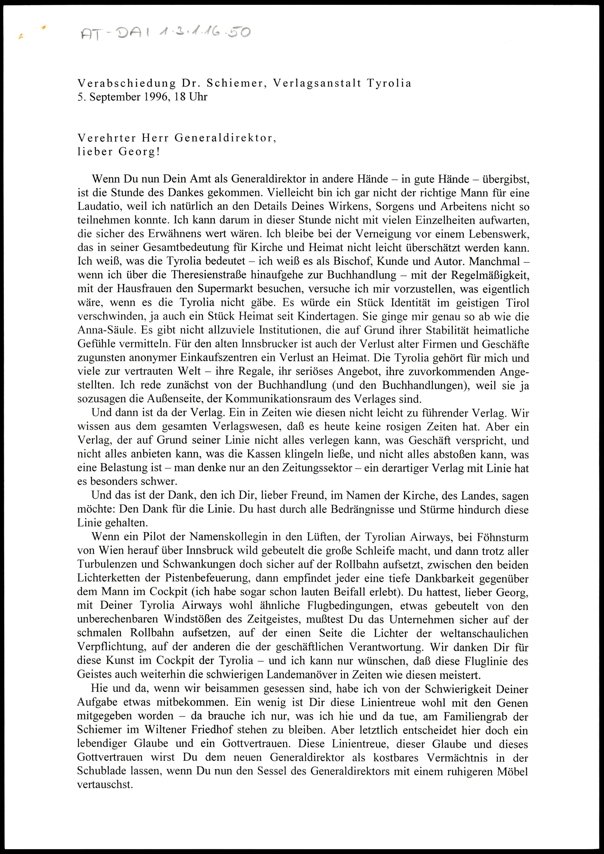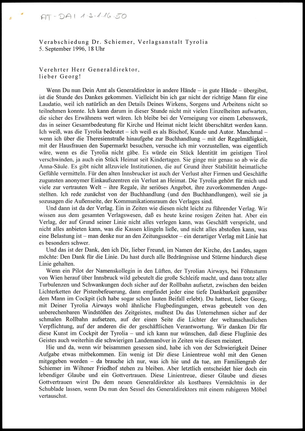Verabschiedung Dr. Schiemer, Verlagsanstalt Tyrolia