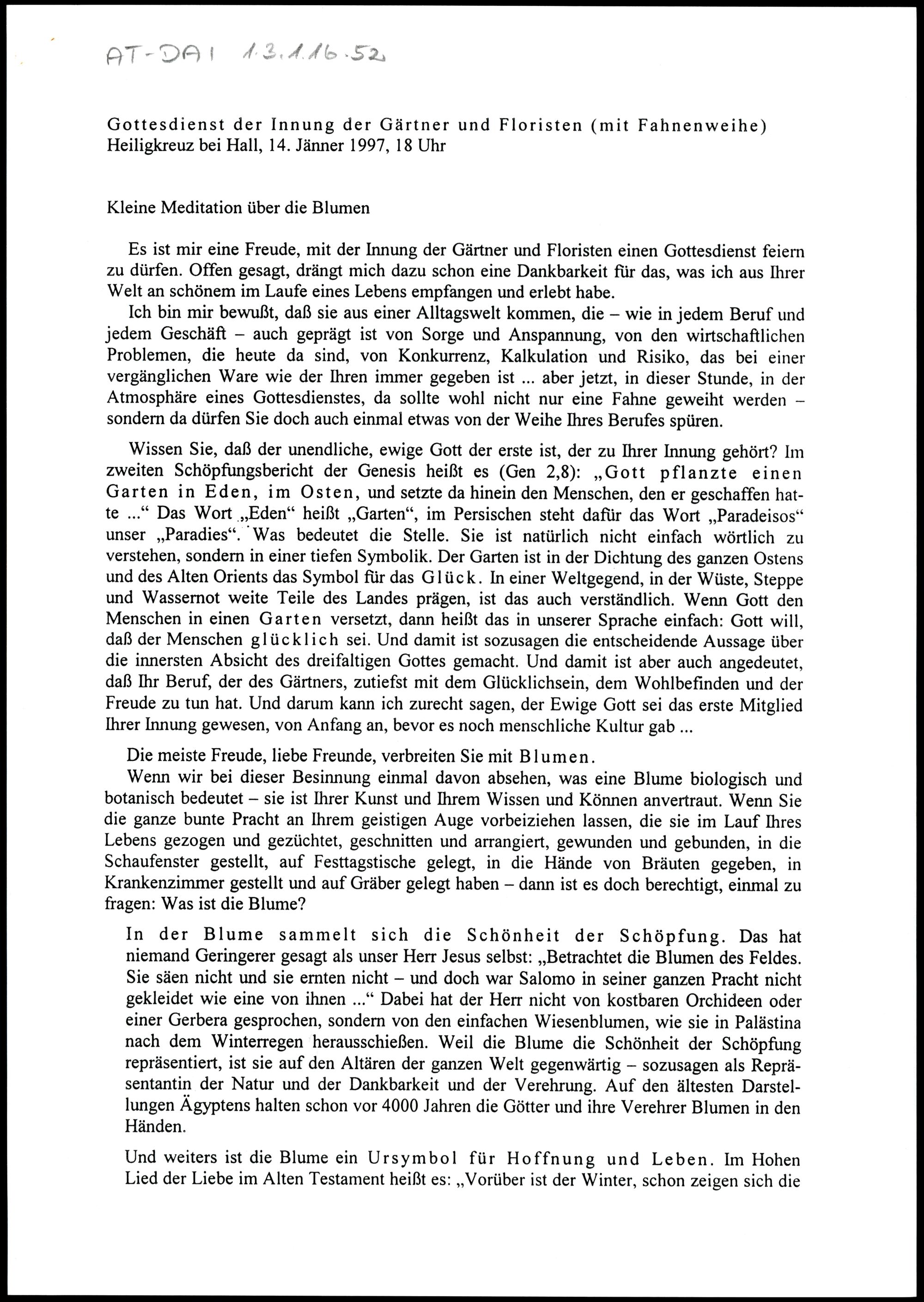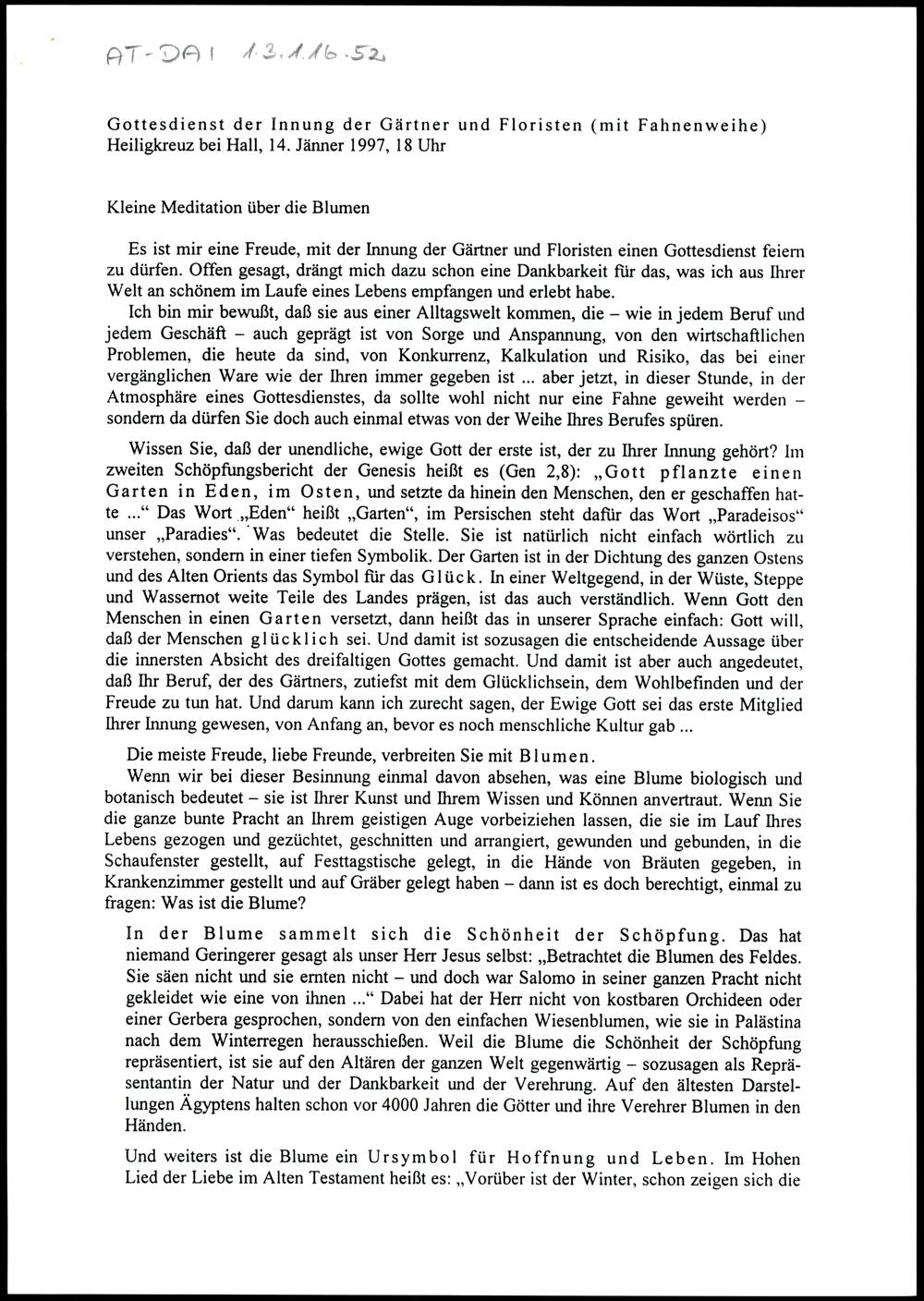 Gottesdienst der Innung der Gärtner und Floristen