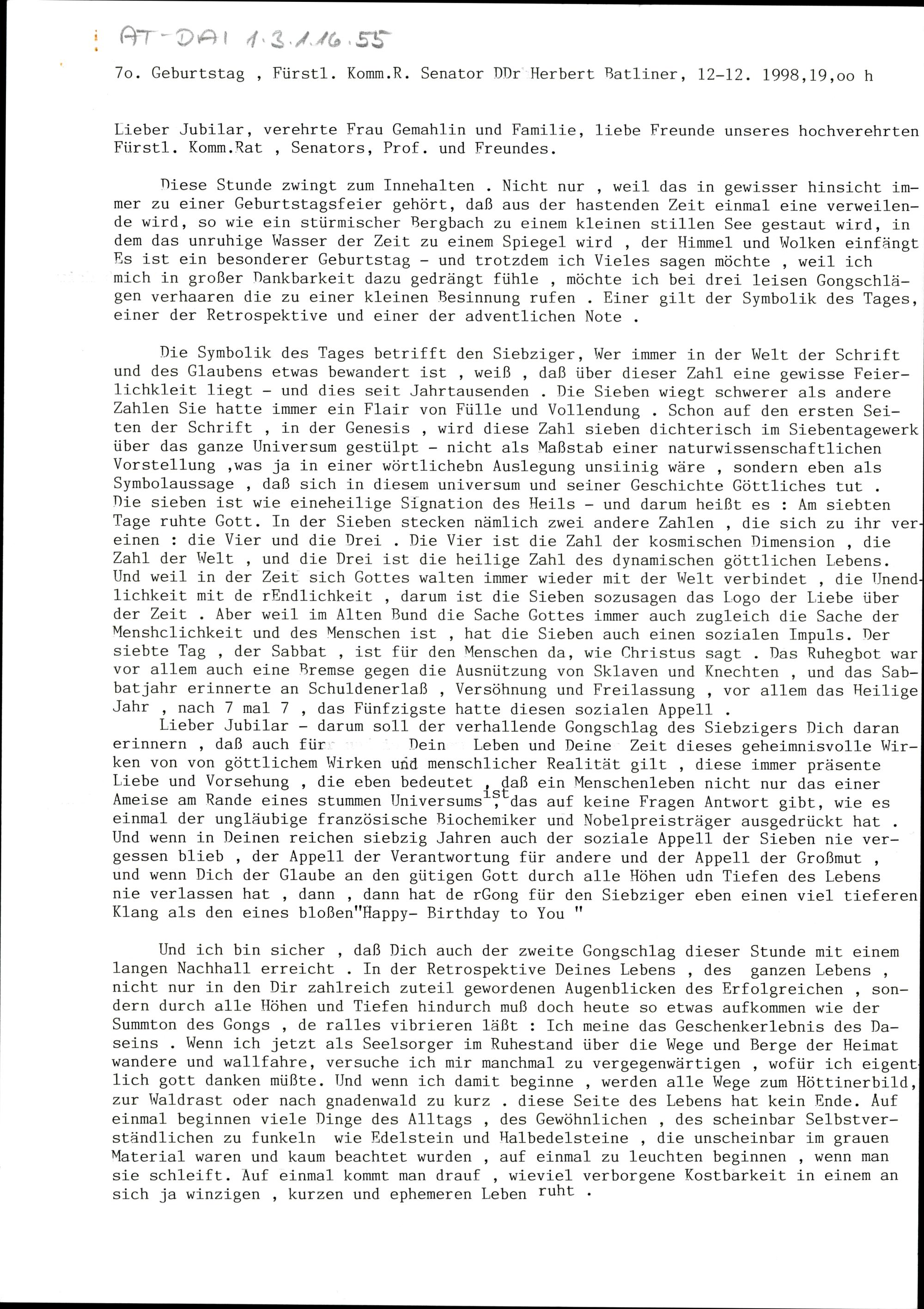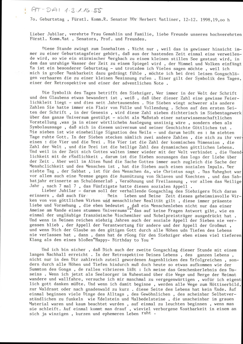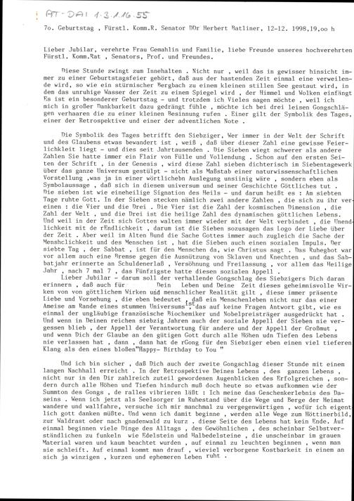 70. Geburtstag Fürstl. Komm.R. Senator DDr. Herbert Batliner