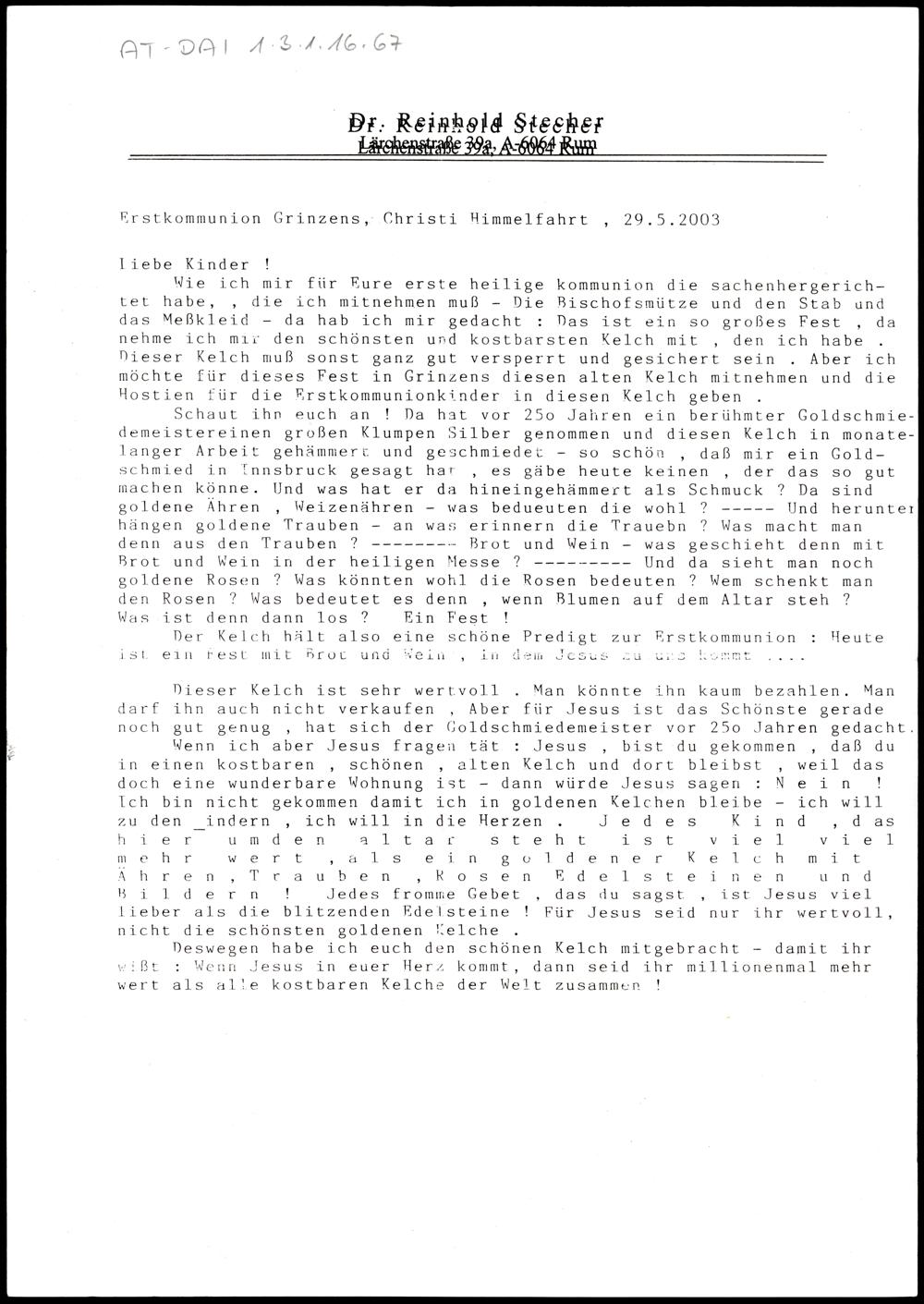 Nachlass Bischof Stecher