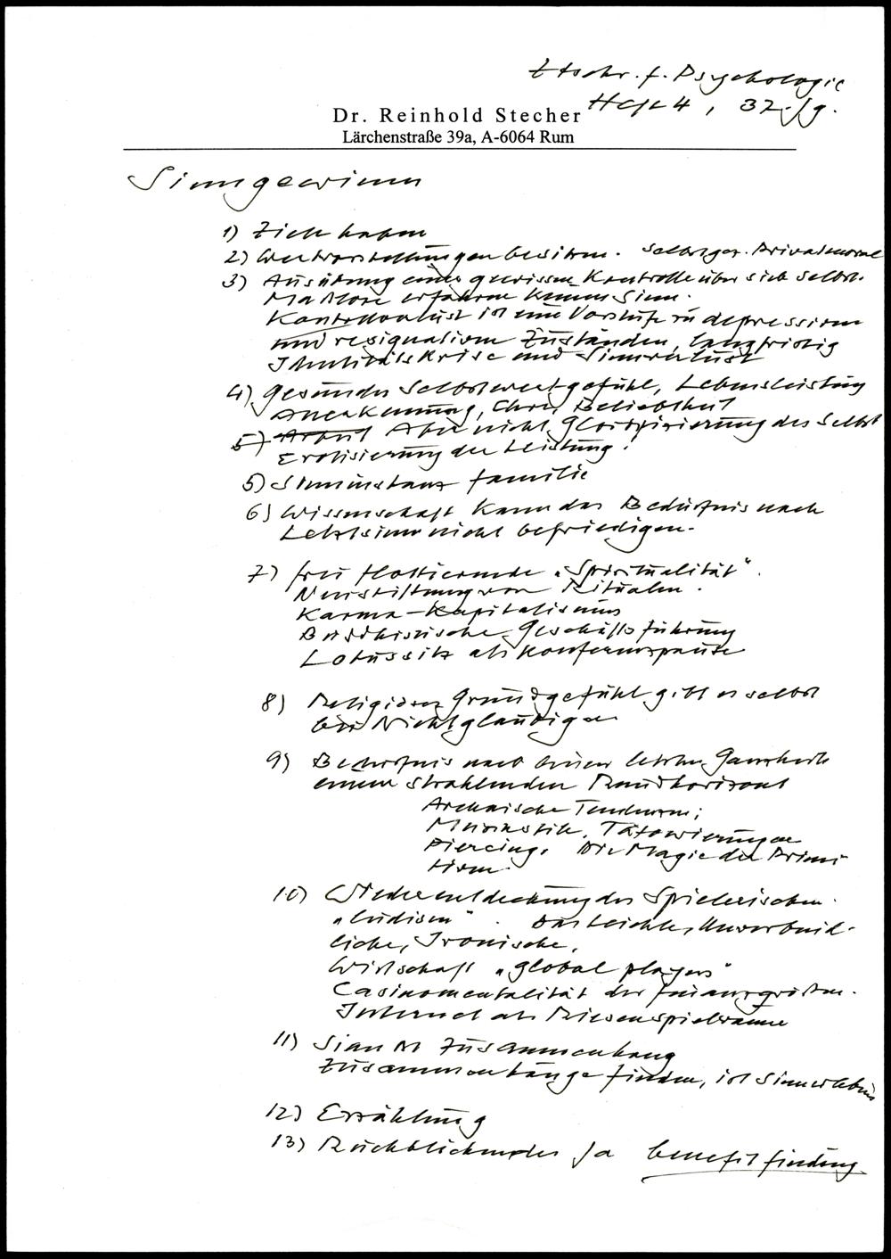 handschriftliche Notizen der Zeitschrift für Psychologie, Heft 4, 37. Jg. "Sinngewinn"