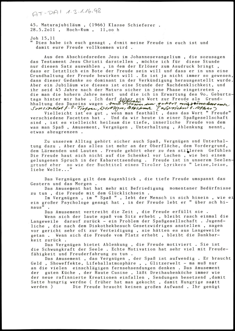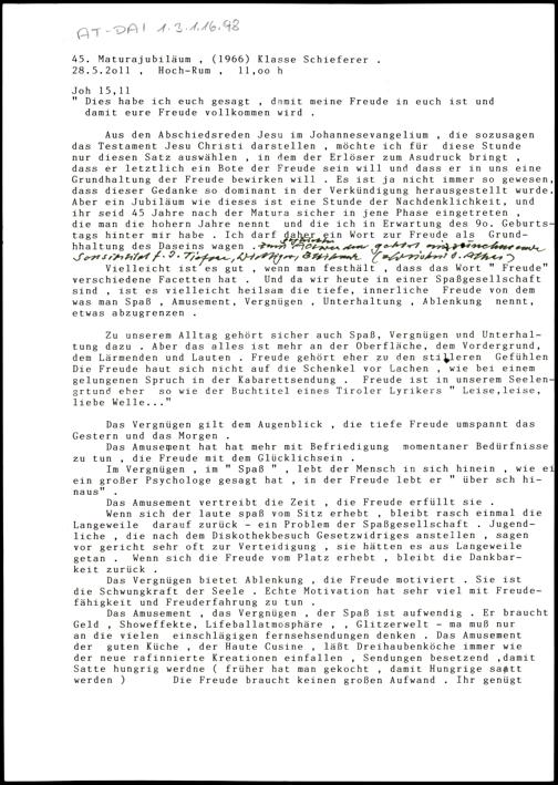 45. Maturajubiläum (1966) Klasse Schieferer