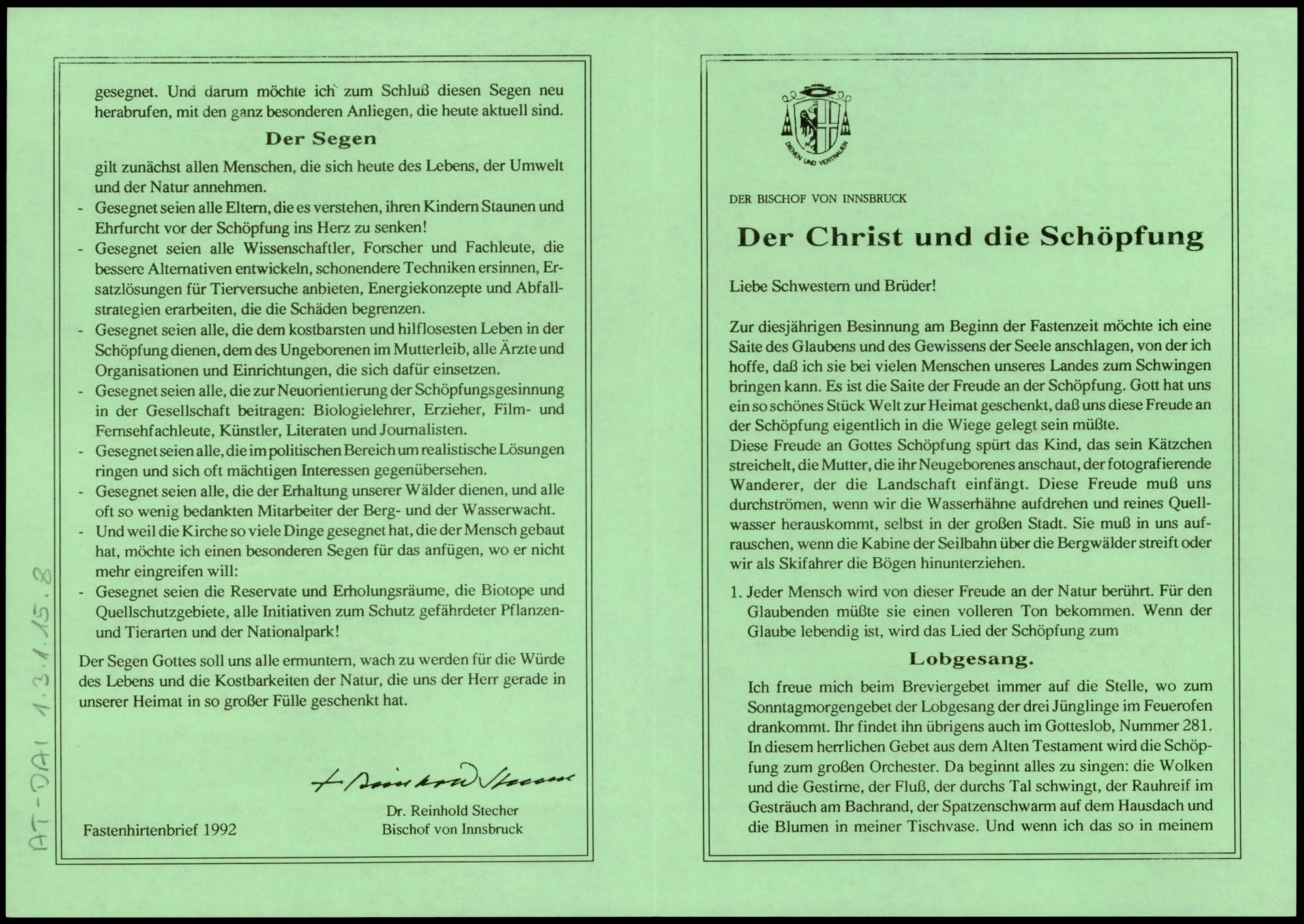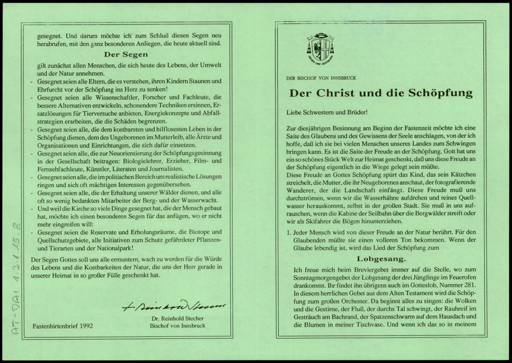 Fastenhirtenbrief 1992