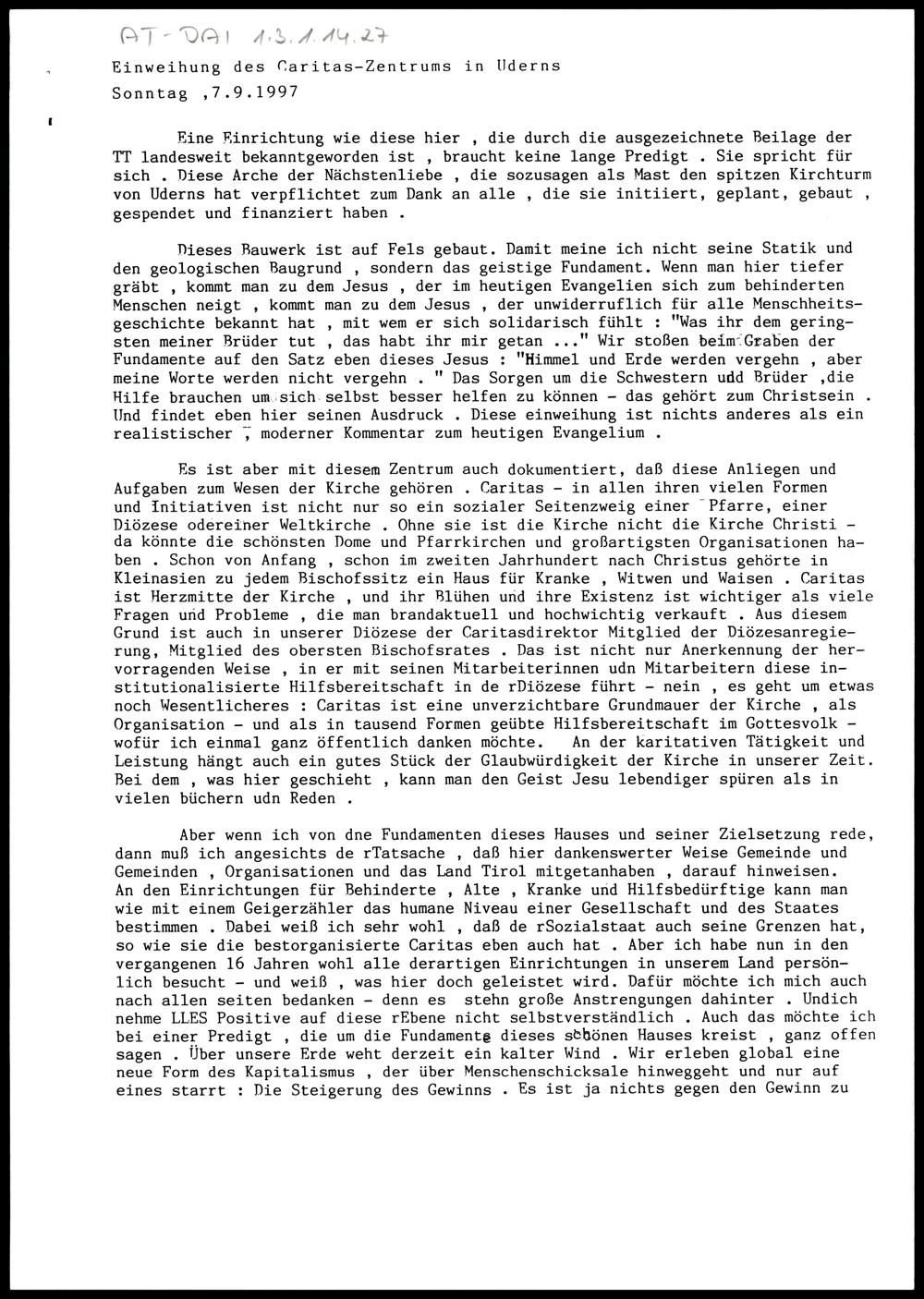 Einweihung des Caritas-Zentrums in Uderns