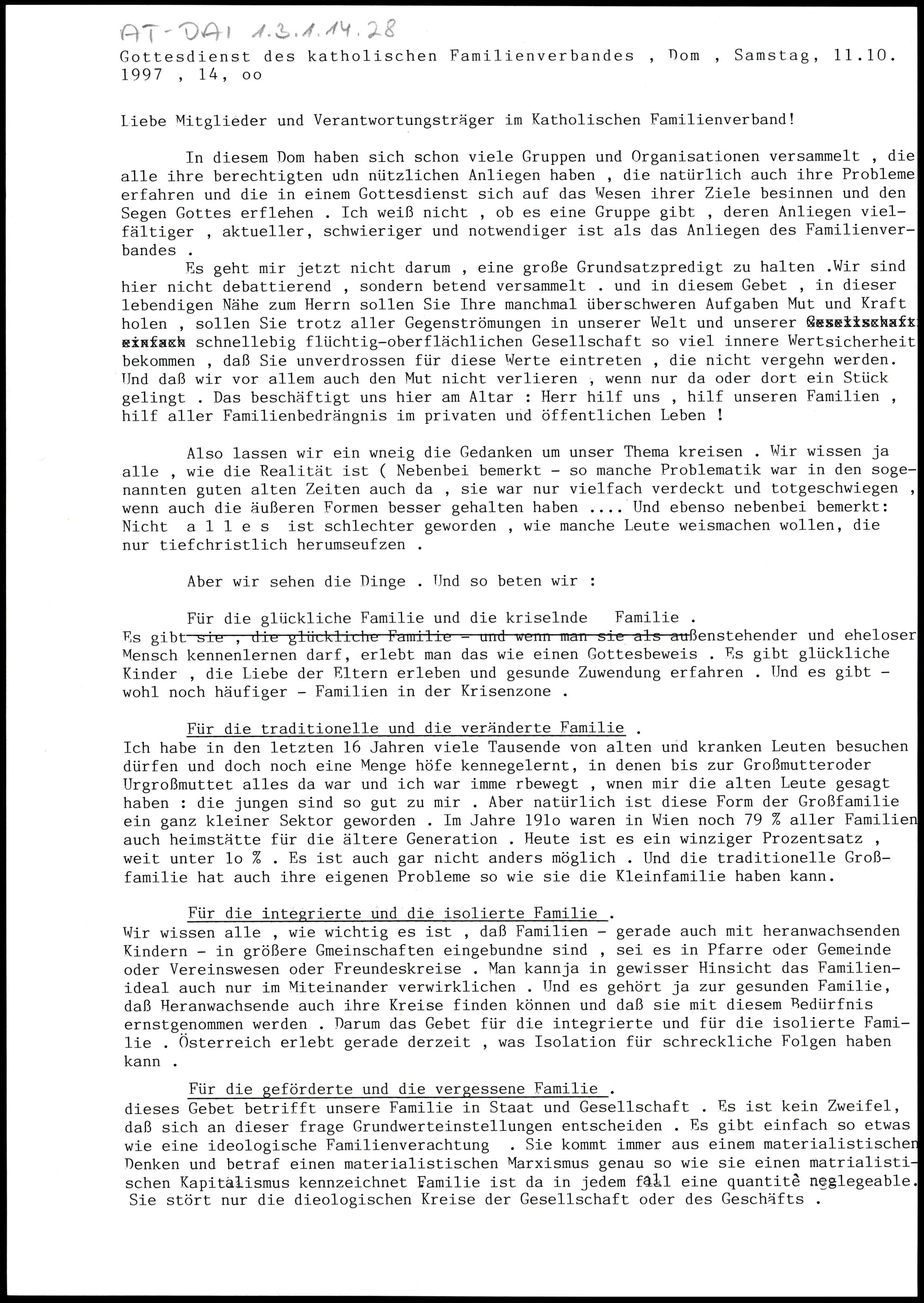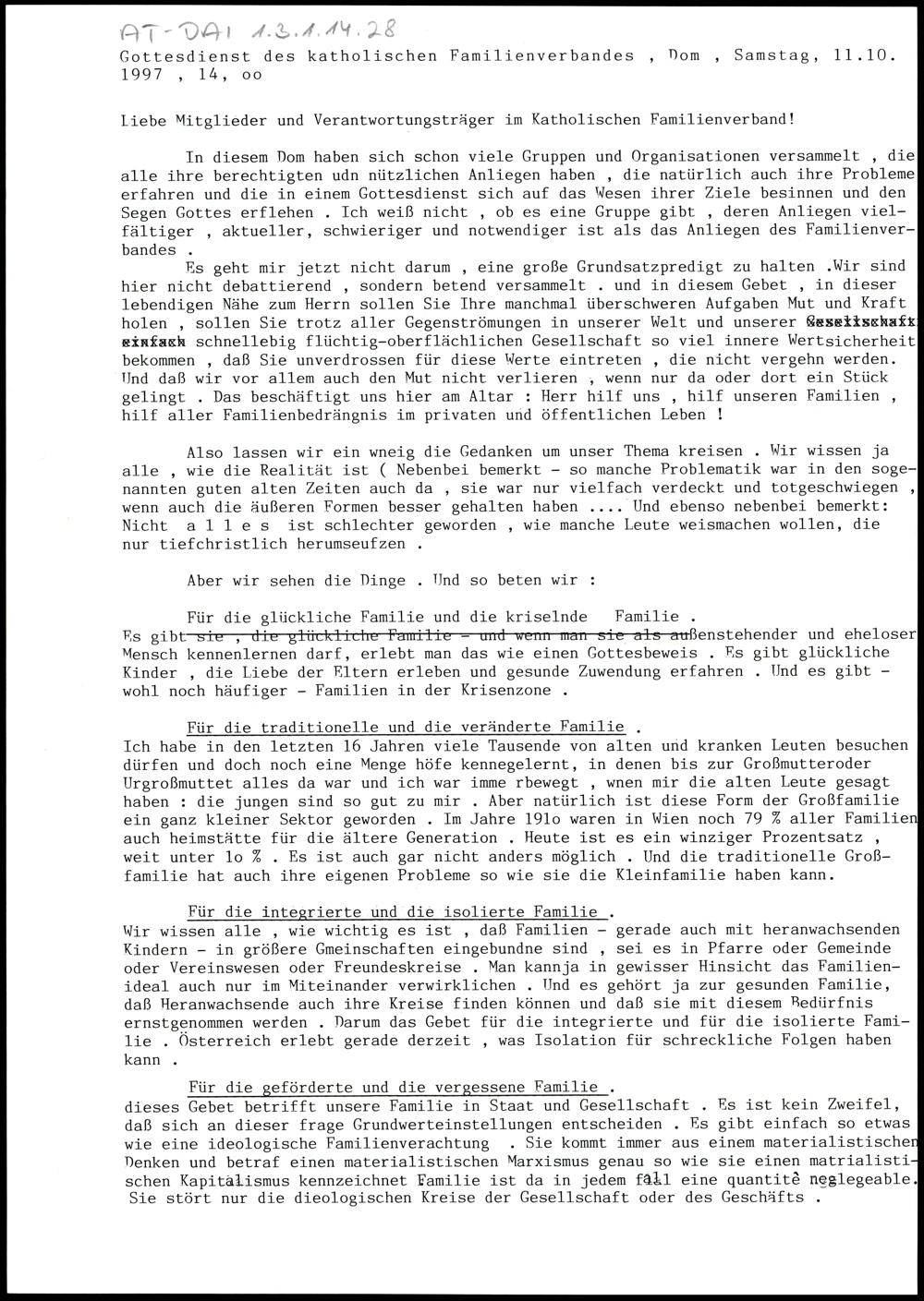 Gottesdienst des katholischen Familienverbandes