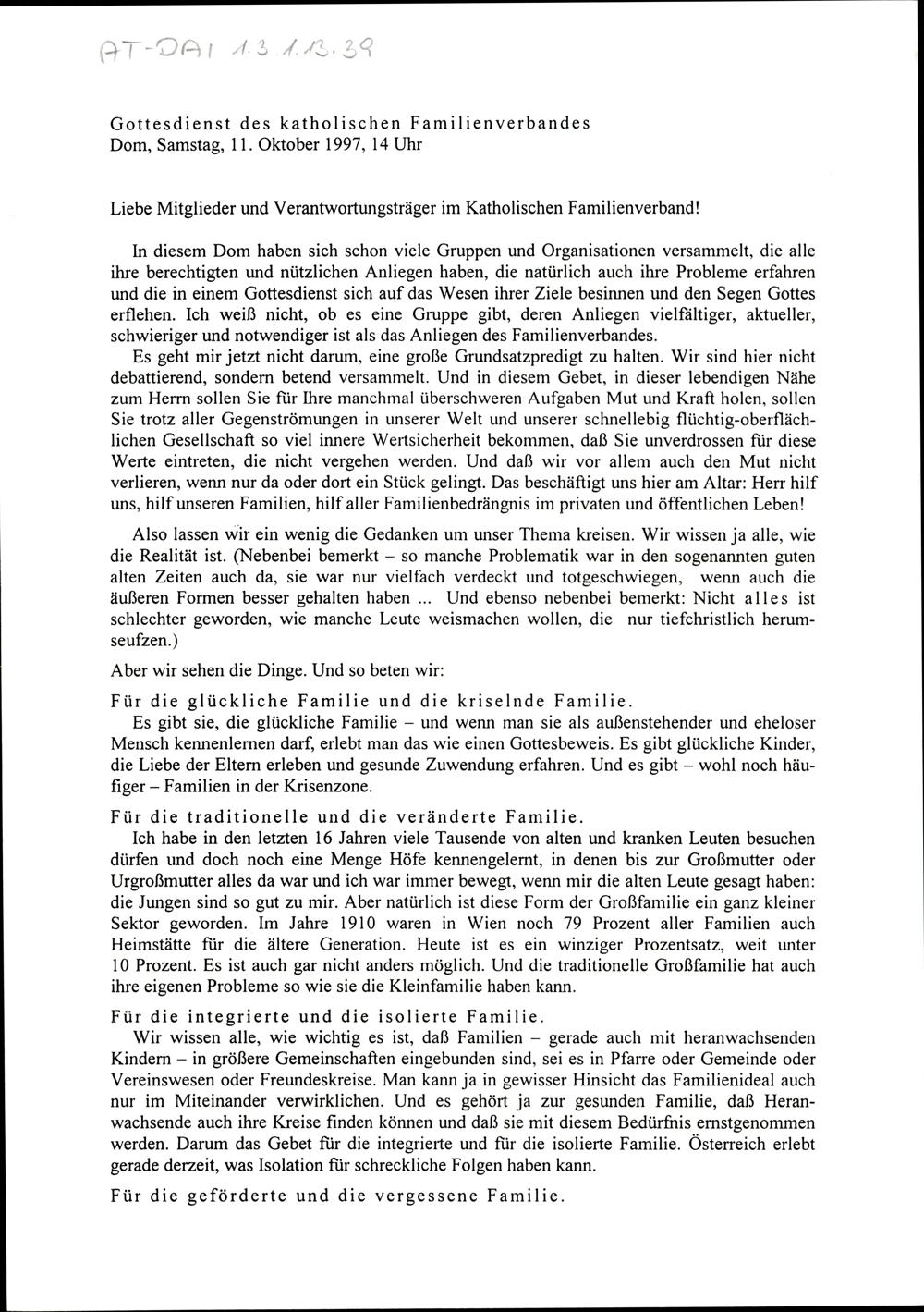 Gottesdienst des katholischen Familienverbandes
