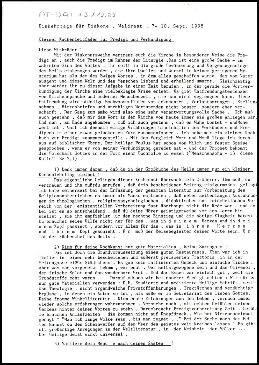 Einkehrtage für Diakone