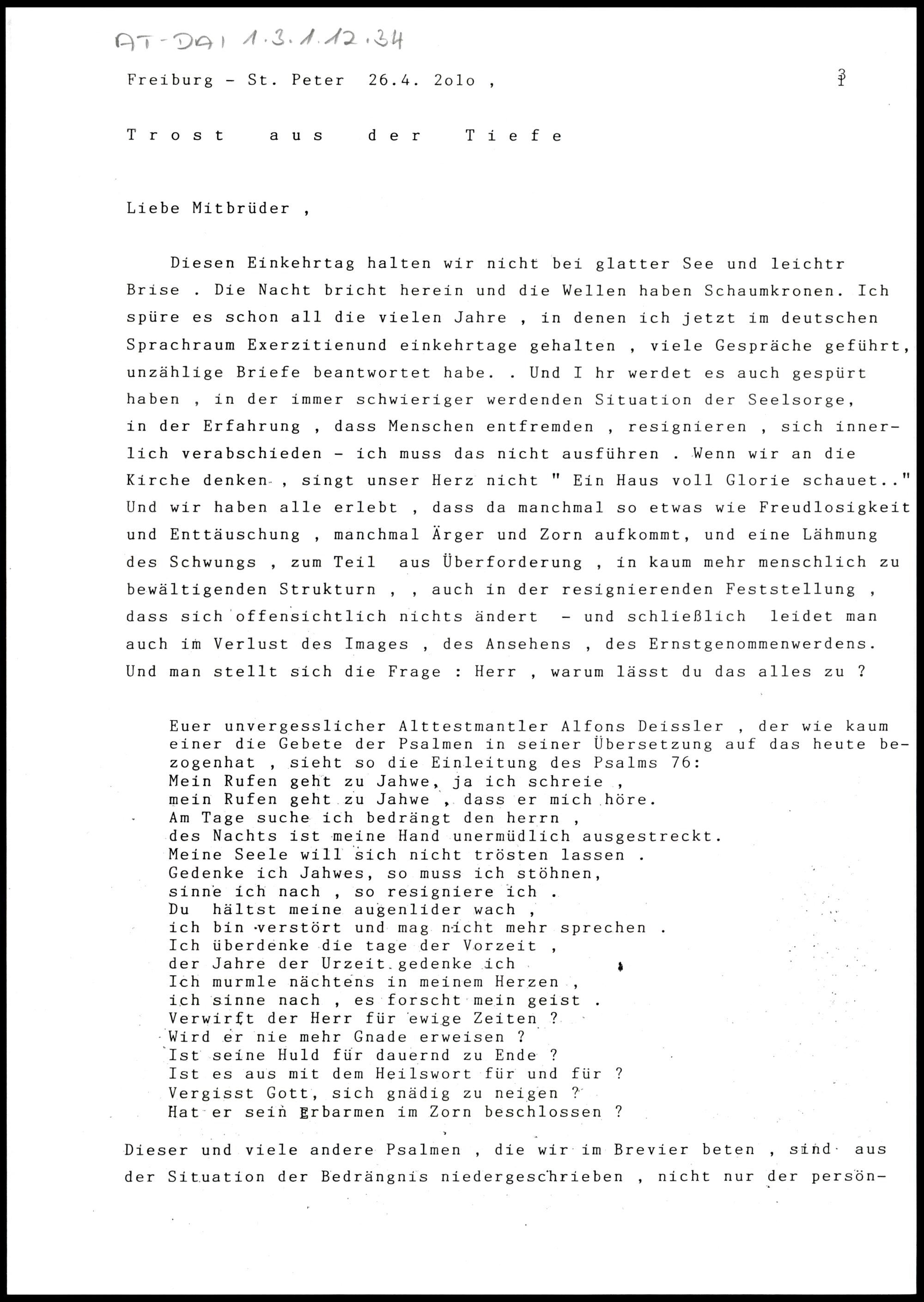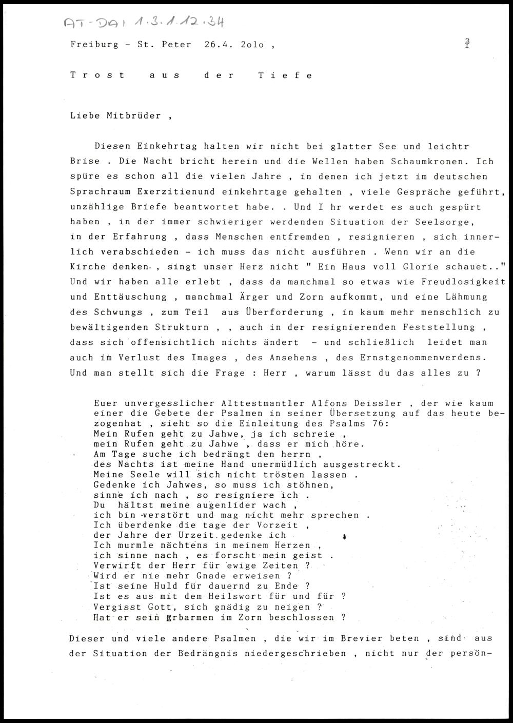 Einkehrtag für Priester in Freiburg-St. Peter