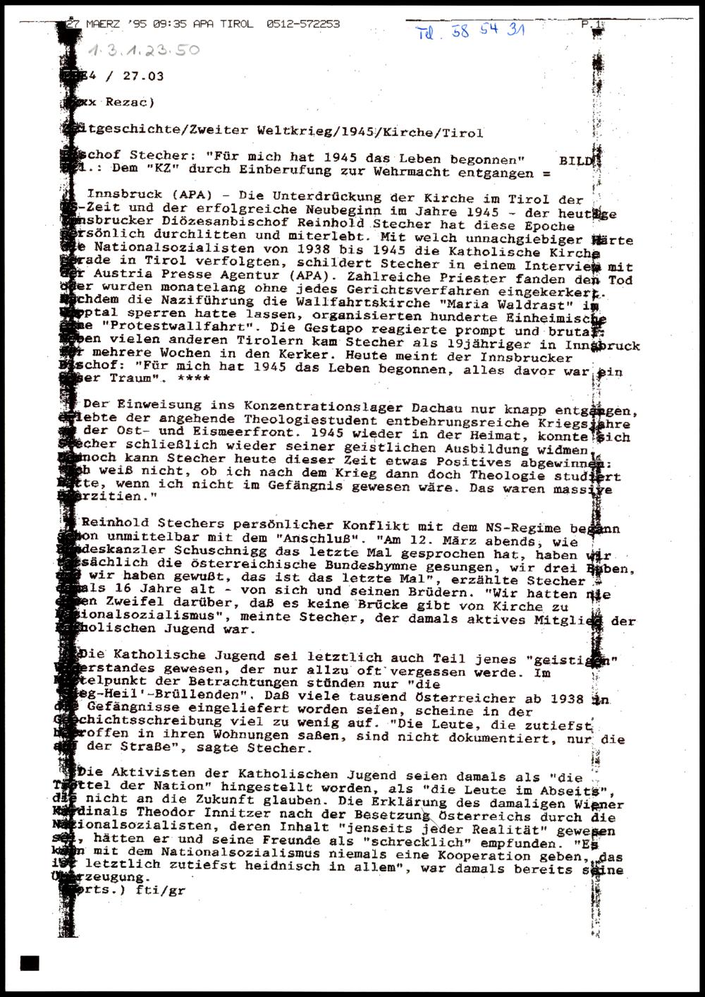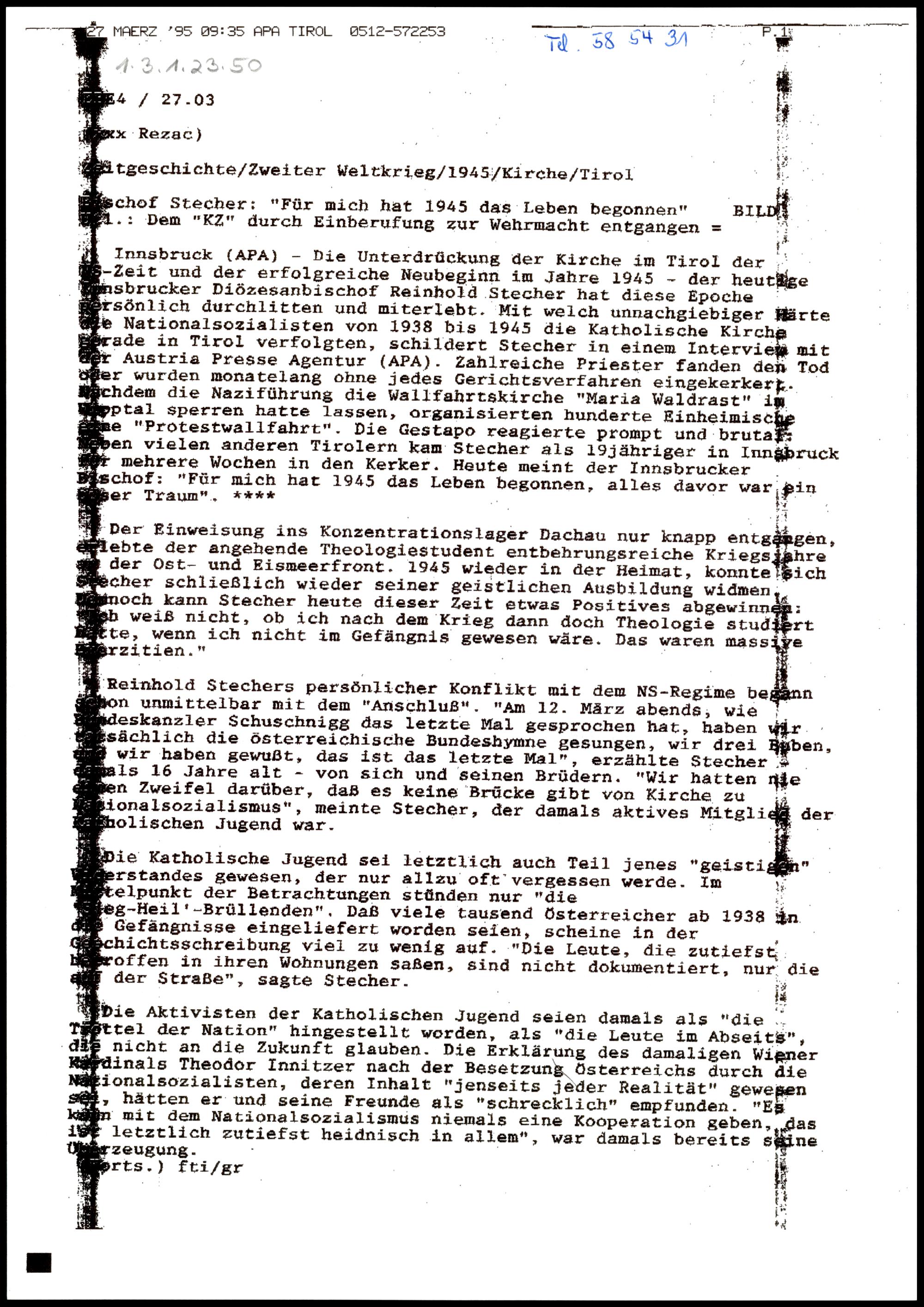 Fax APA Tirol Meldung 1