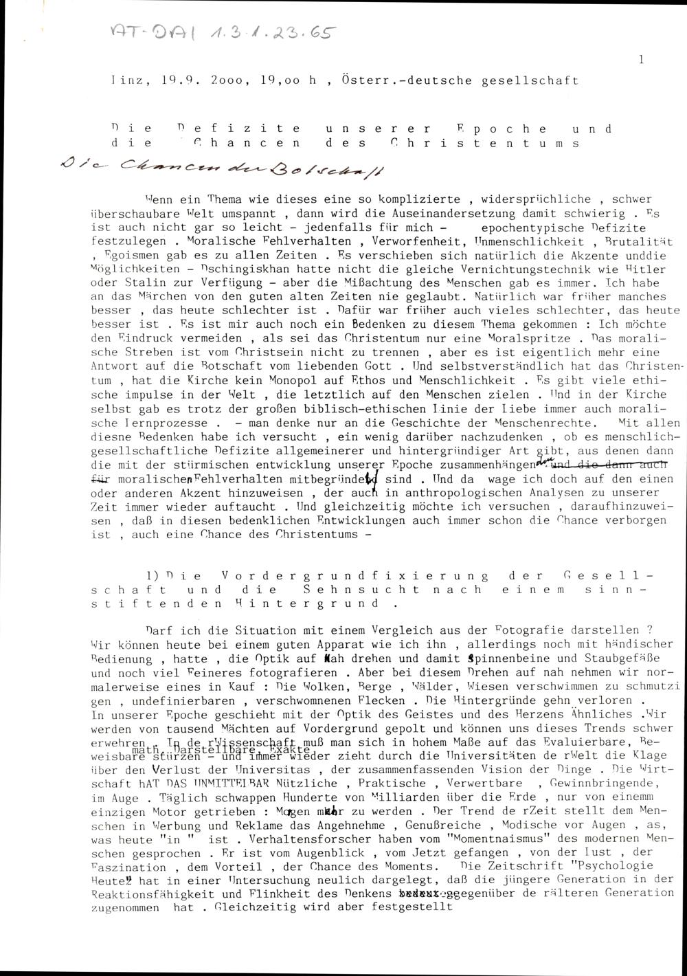 Die Defizite unserer Epoche und die Chancen des Christentums