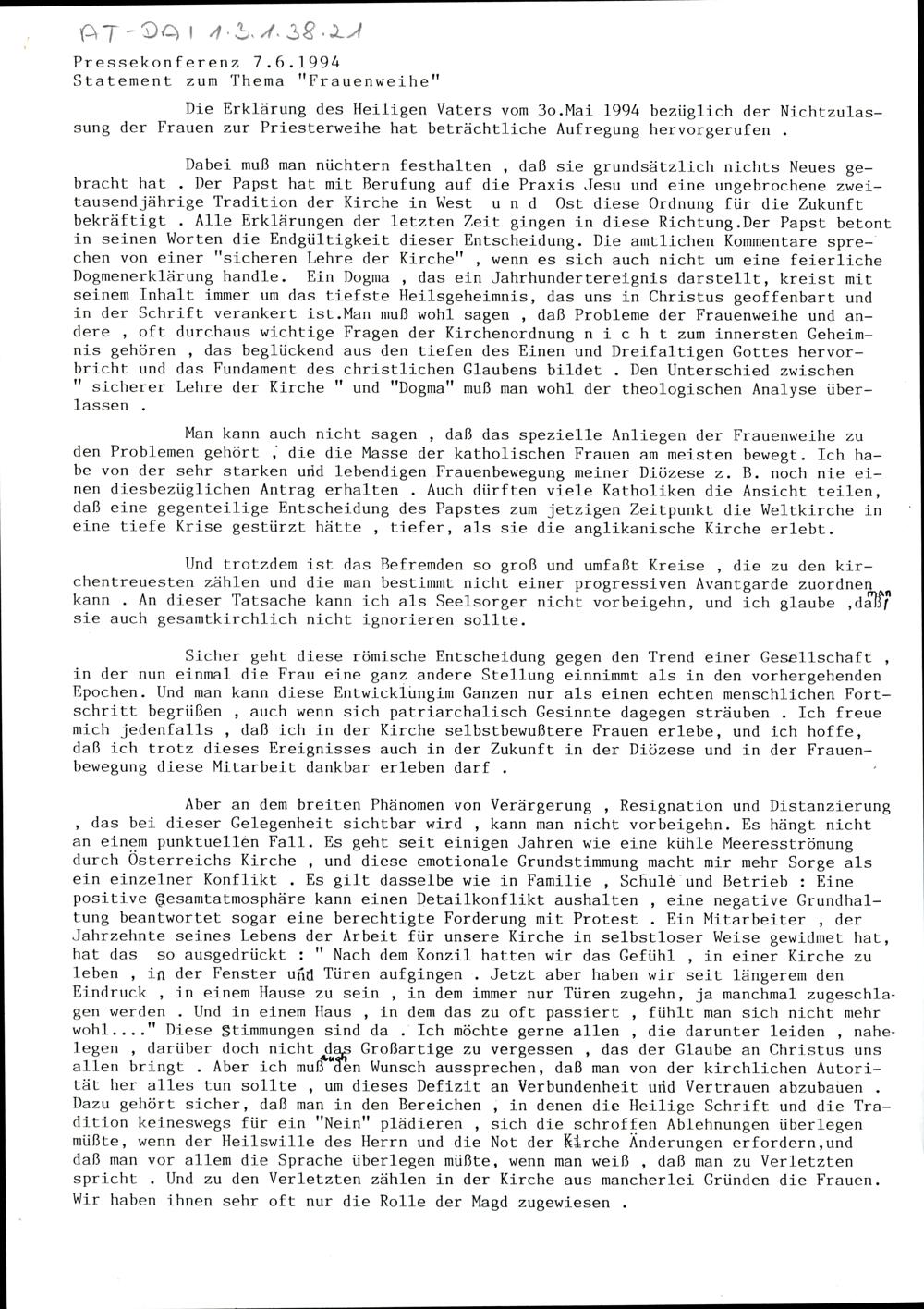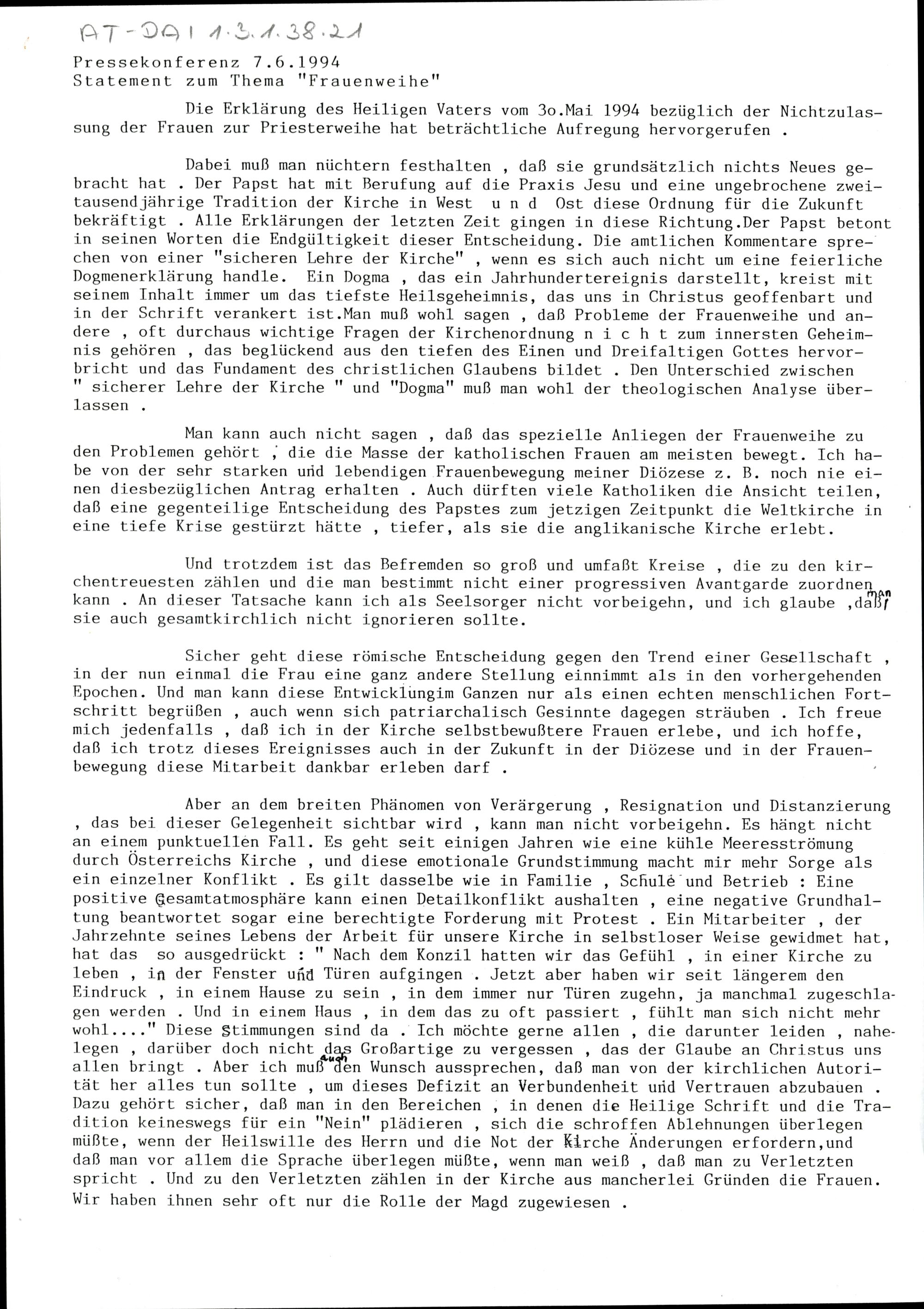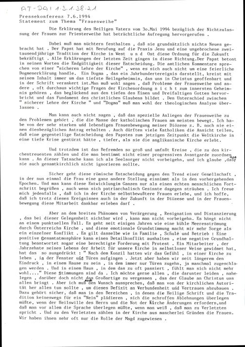 Statement zum Thema "Frauenweihe"