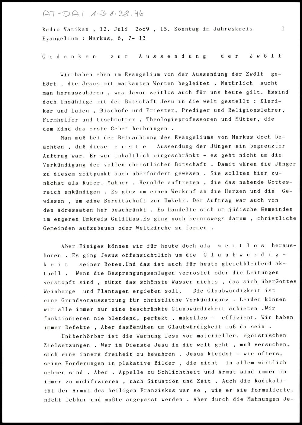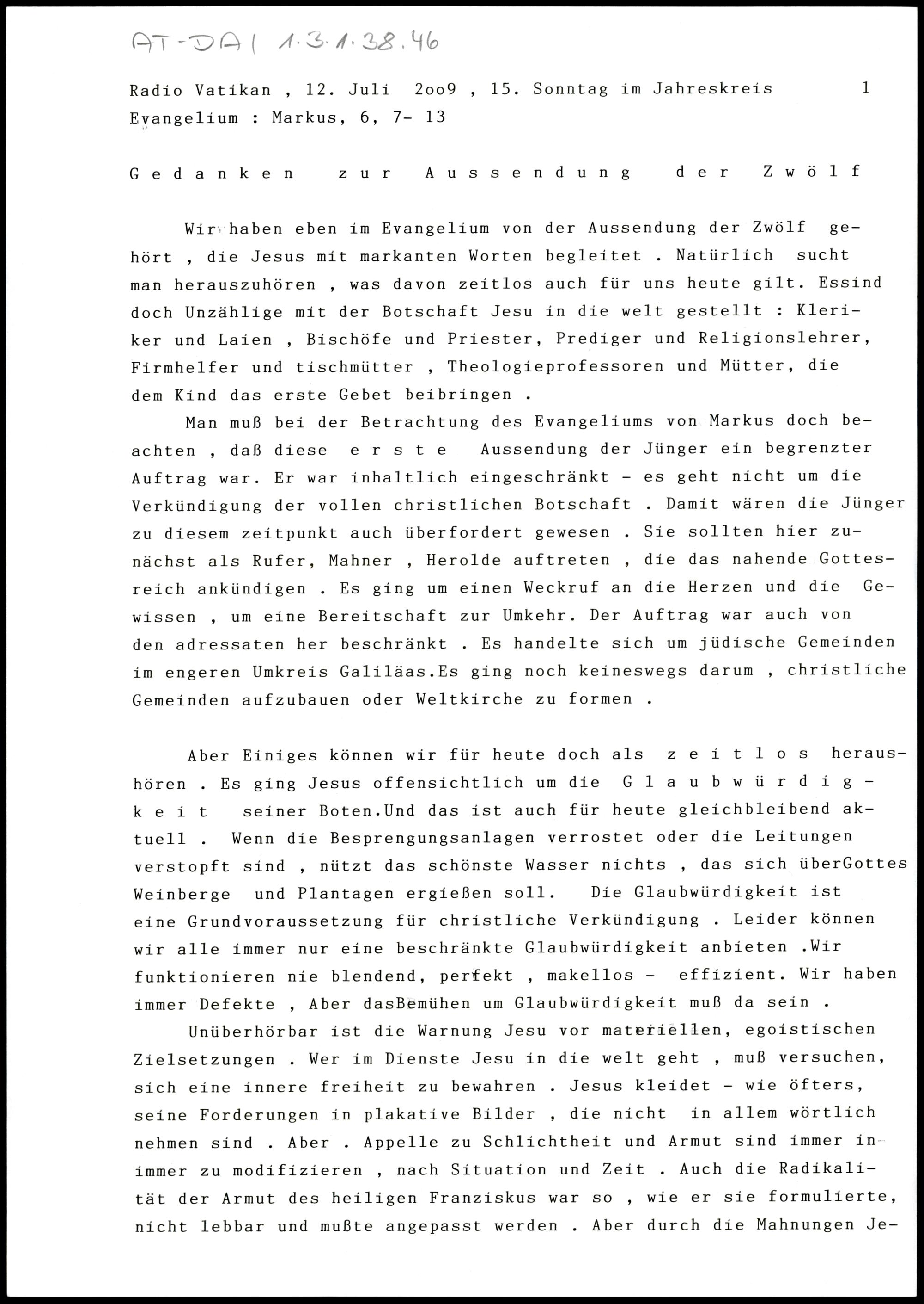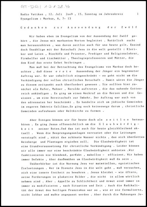 Gedanken zur Aussendung der Zwölf