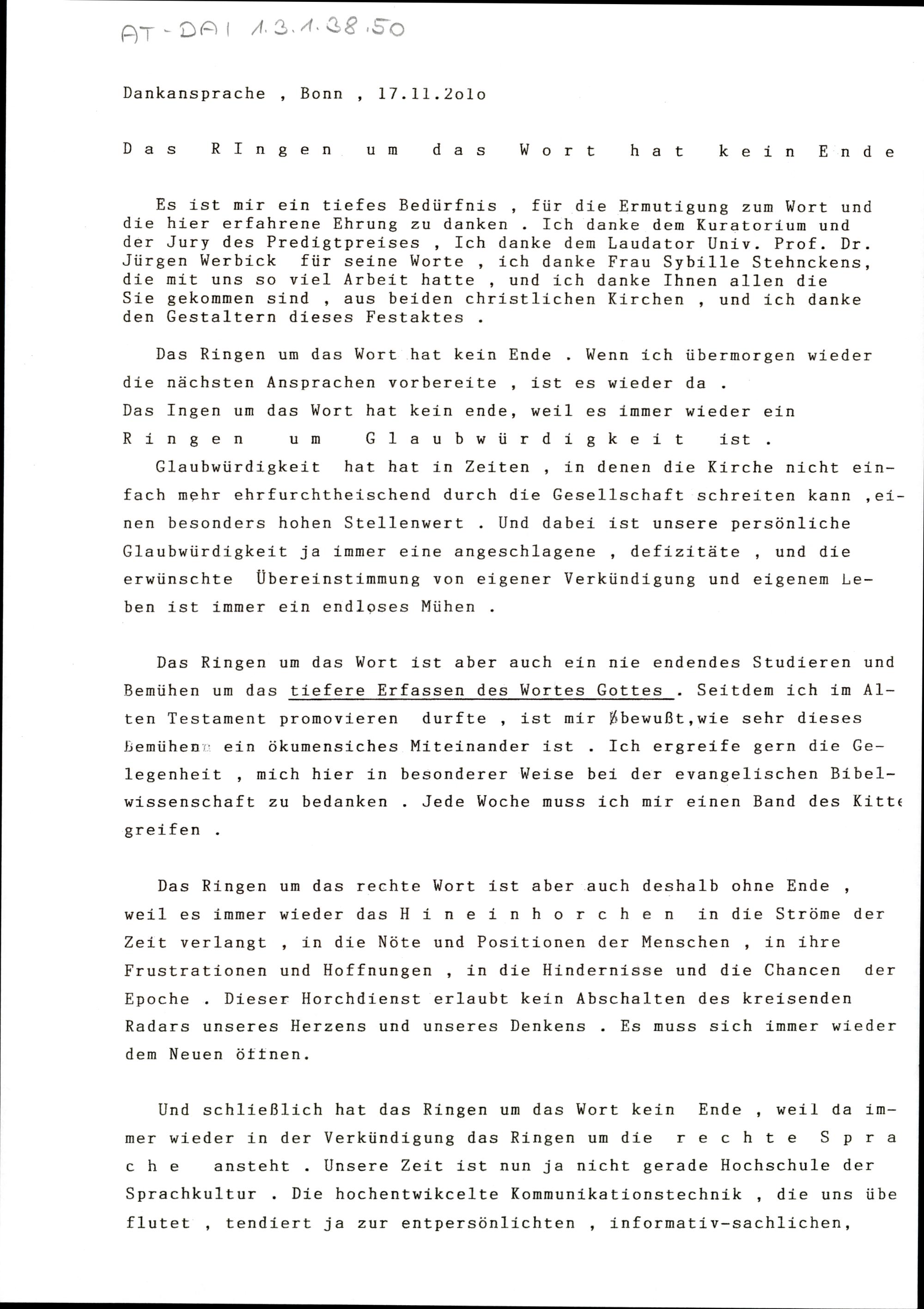 Das Ringen um das Wort hat kein Ende